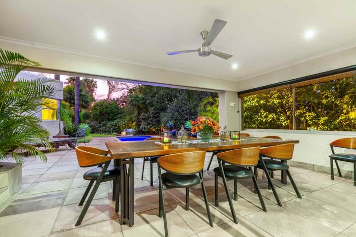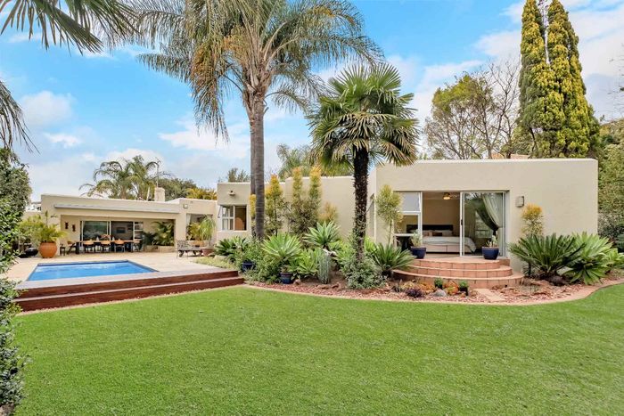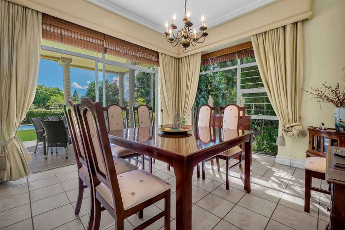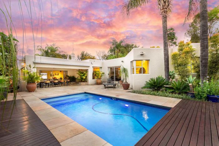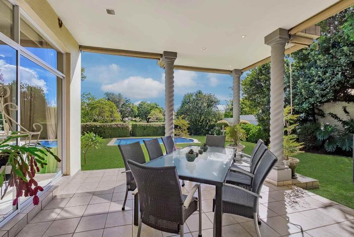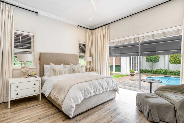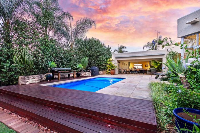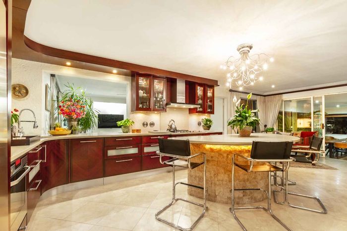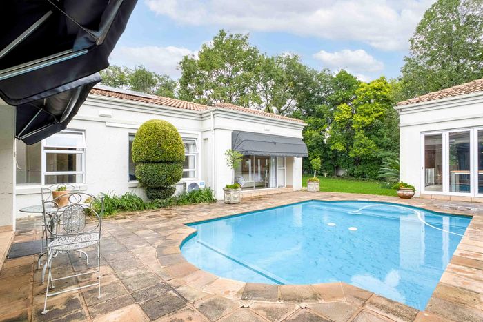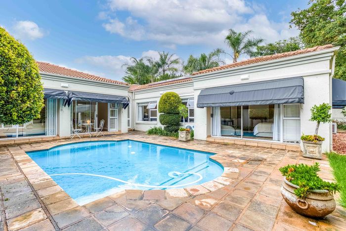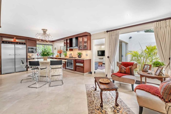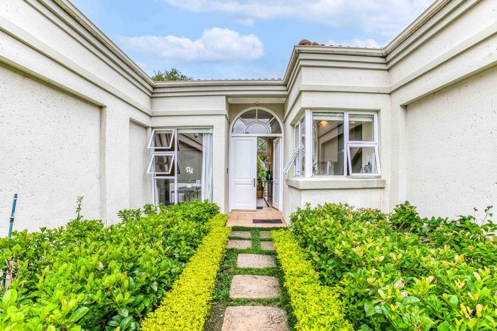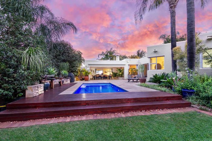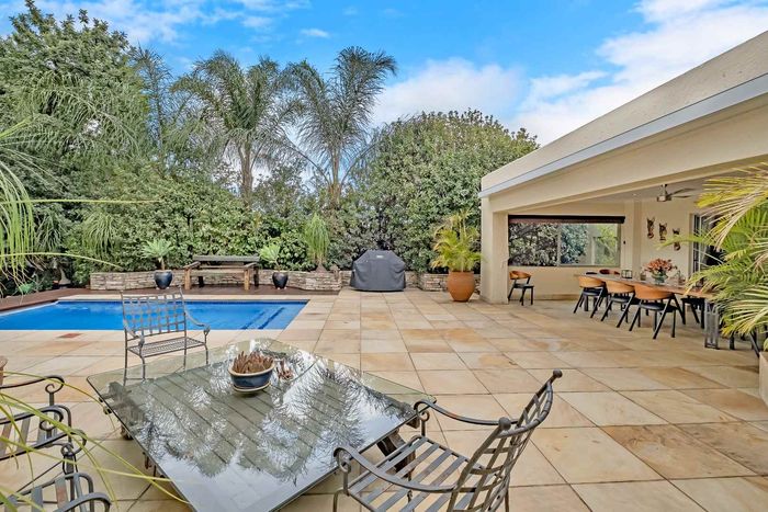 Resort-style living in prestigious Dainfern Golf Estate, bordering a tranquil greenbelt; chef’s kitchen, oversized covered patio and pool, plus four en-suite bedrooms and a golf-cart garage.