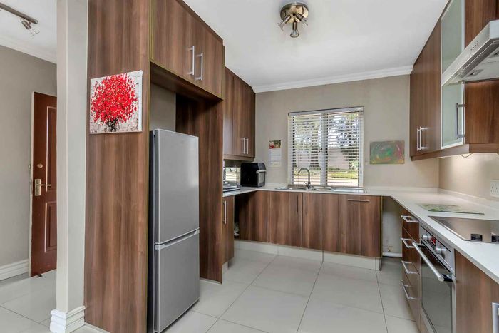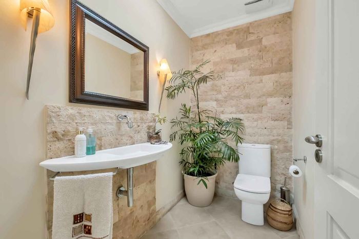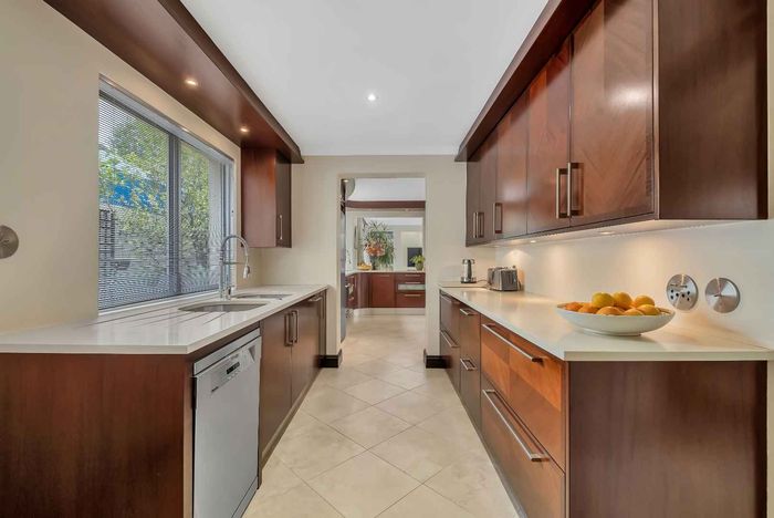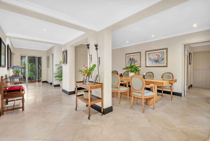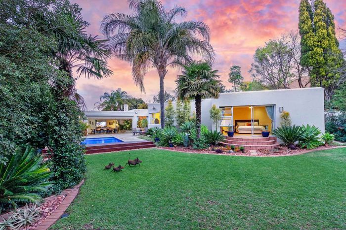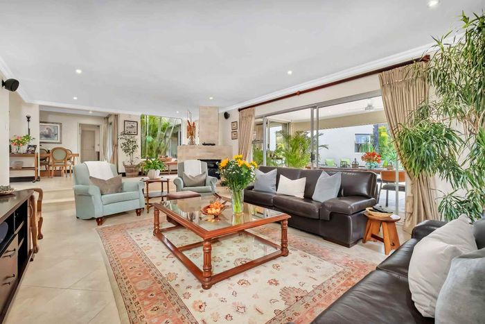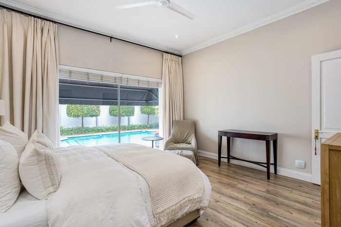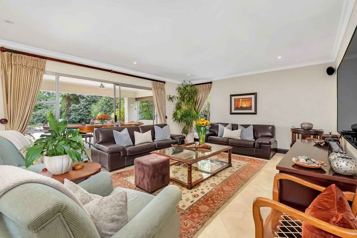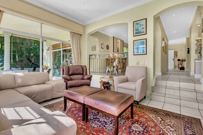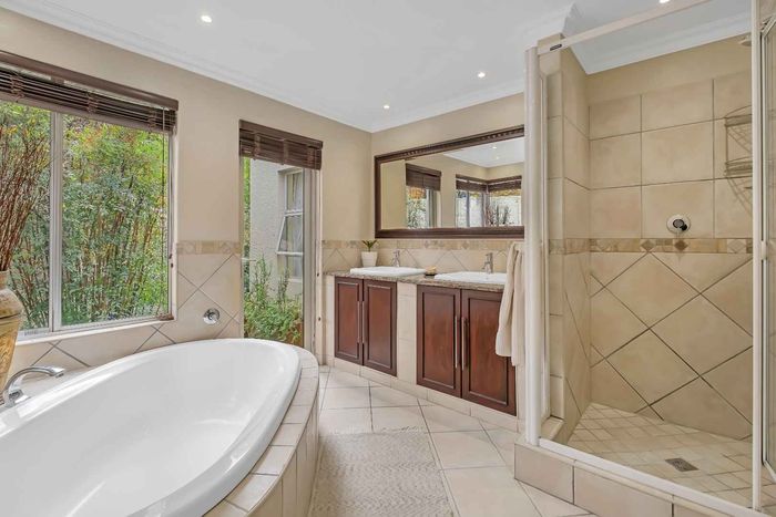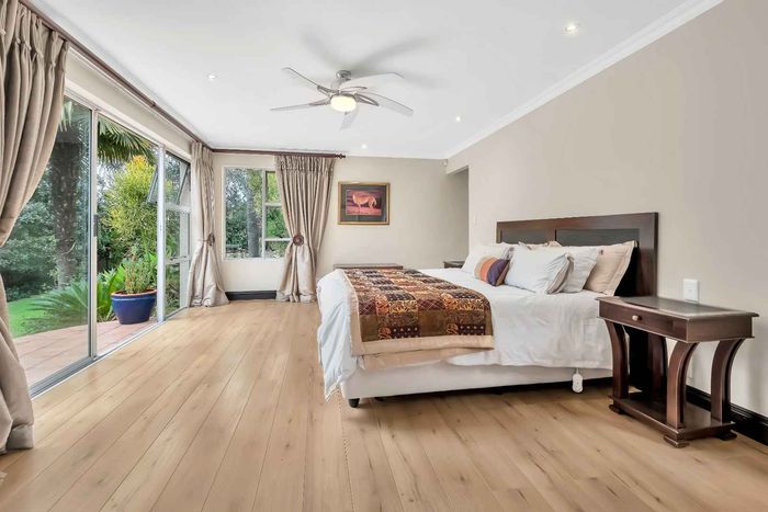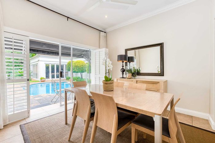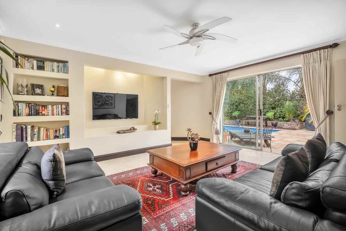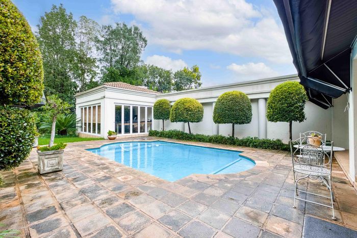 Resort-style living in prestigious Dainfern Golf Estate, bordering a tranquil greenbelt; chef’s kitchen, oversized covered patio and pool, plus four en-suite bedrooms and a golf-cart garage.