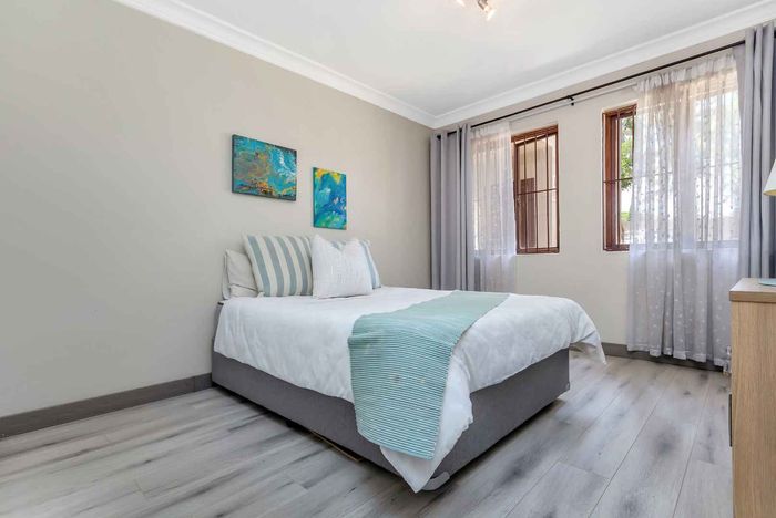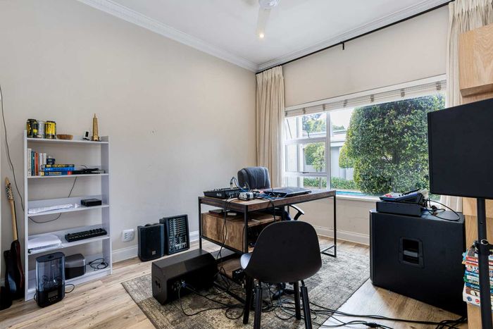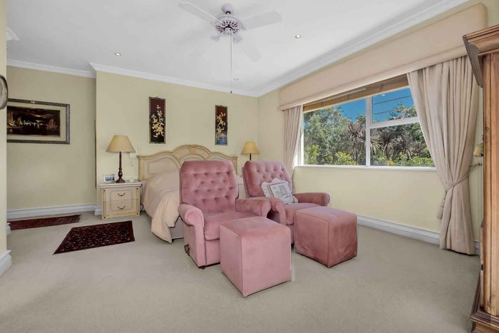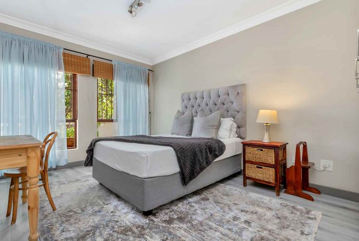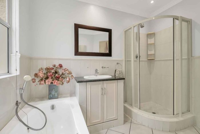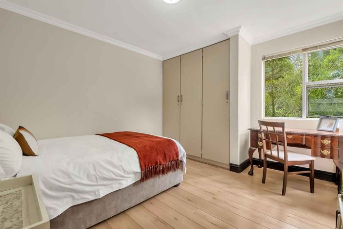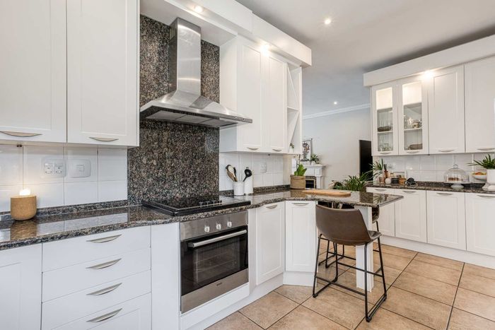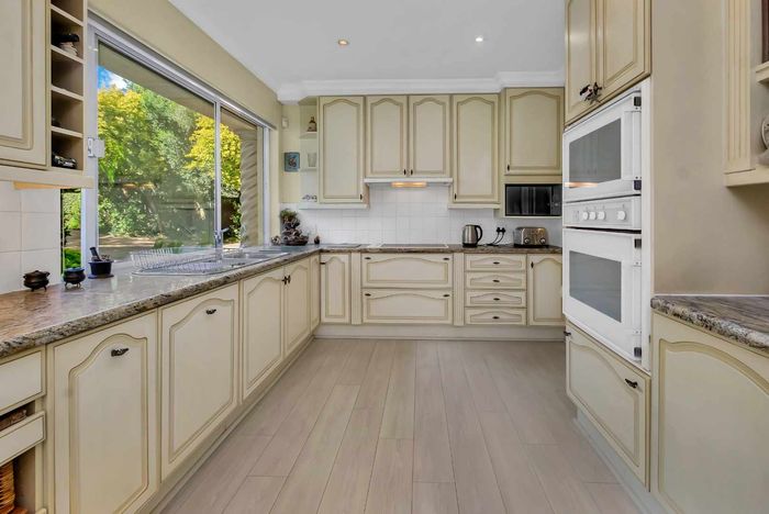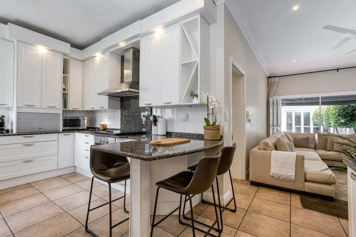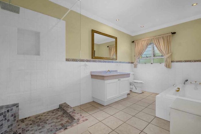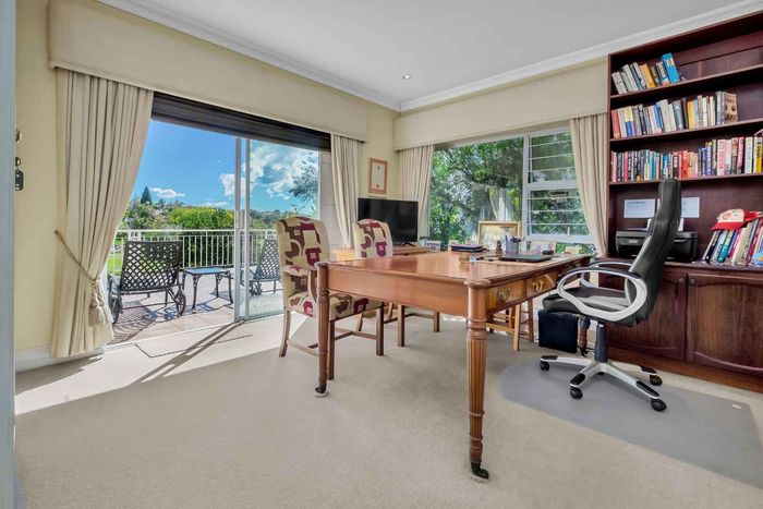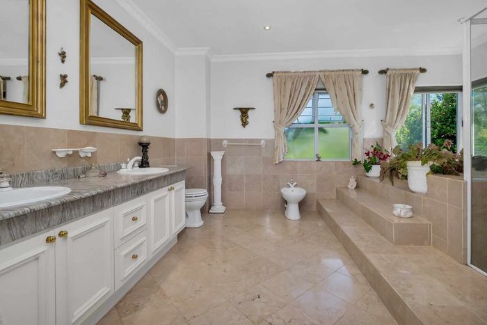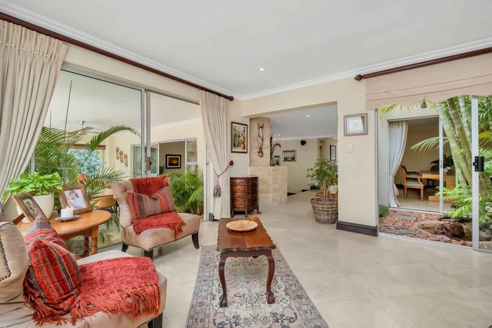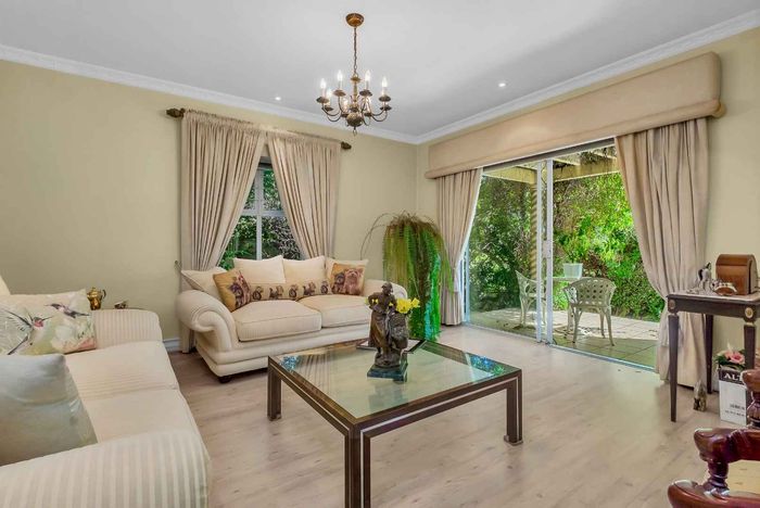 Resort-style living in prestigious Dainfern Golf Estate, bordering a tranquil greenbelt; chef’s kitchen, oversized covered patio and pool, plus four en-suite bedrooms and a golf-cart garage.