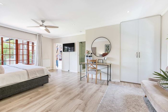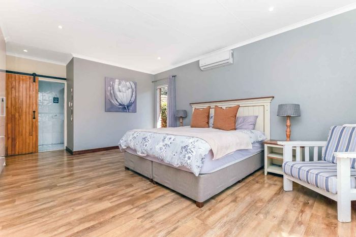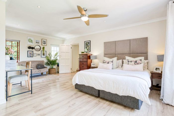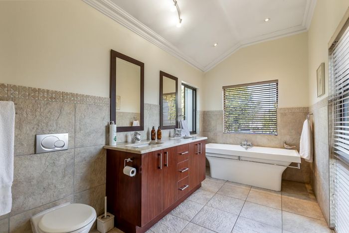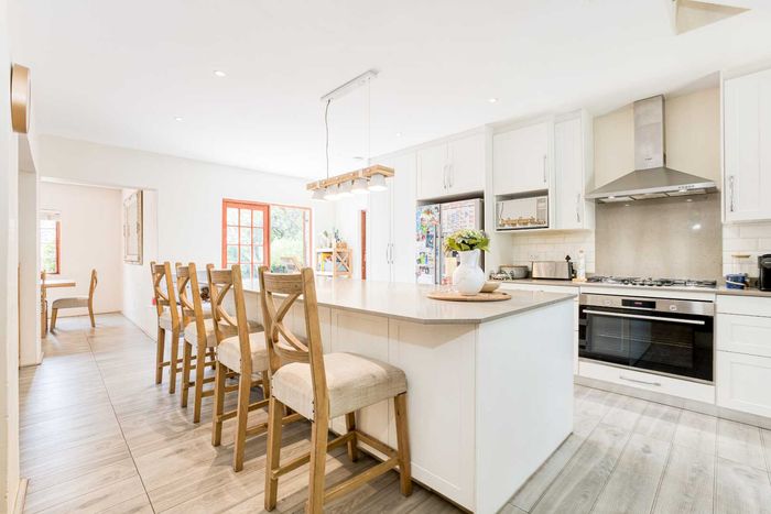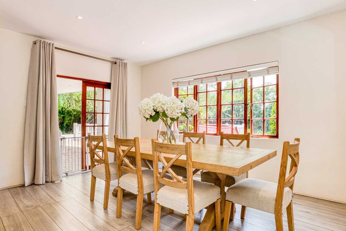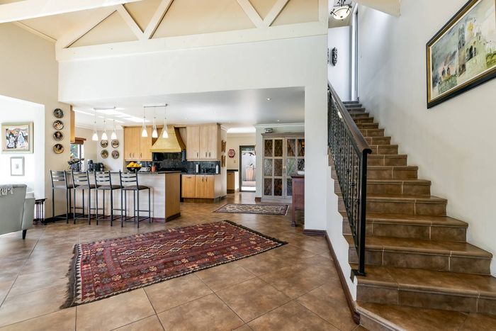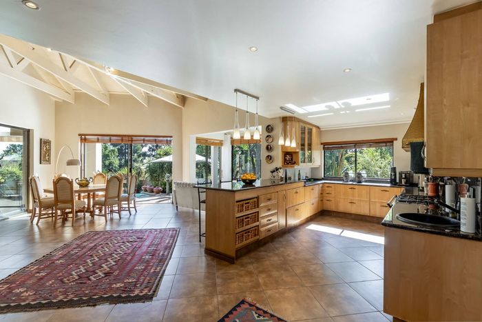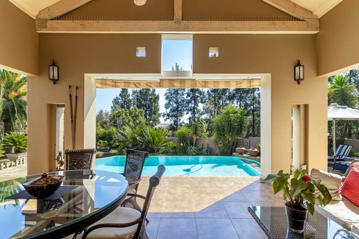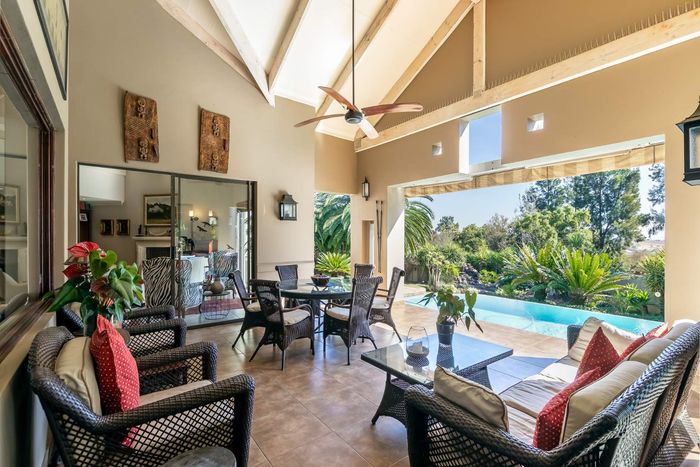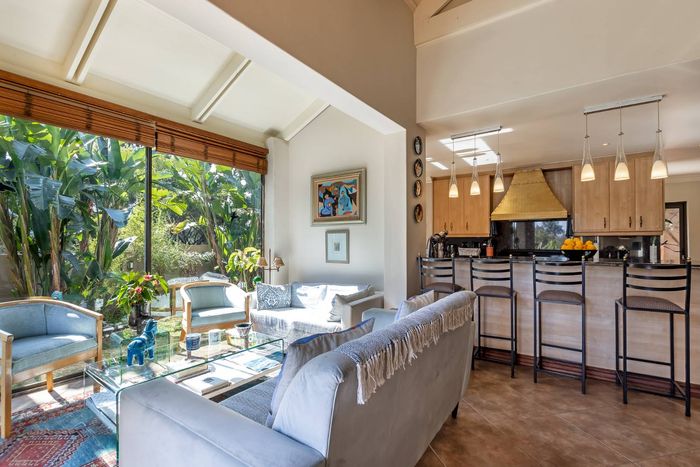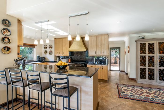 Entertain effortlessly on an elevated Dainfern Golf Estate ridge with panoramic Magalies and course views, expansive established garden, outdoor entertainment areas, chef’s kitchen and three ensuite bedrooms.