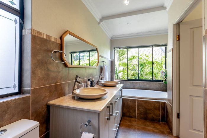 Entertain effortlessly on a covered patio overlooking a lush garden and pool in secure Chateau de Provence, Broadacres, with a wine cellar, modern granite kitchen and double garage.