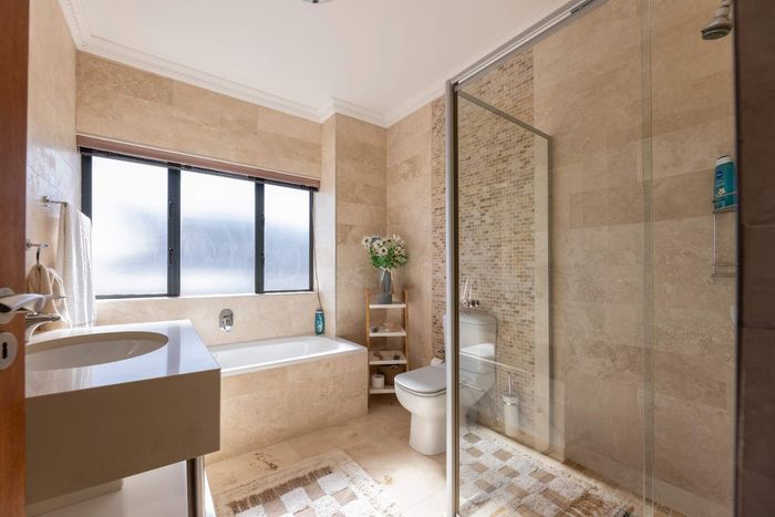 Family-focused country living in a quiet estate adjacent to Dainfern College, with flowing entertaining areas to a covered patio, landscaped garden and pool; five beds, 3.5 baths, triple garage.