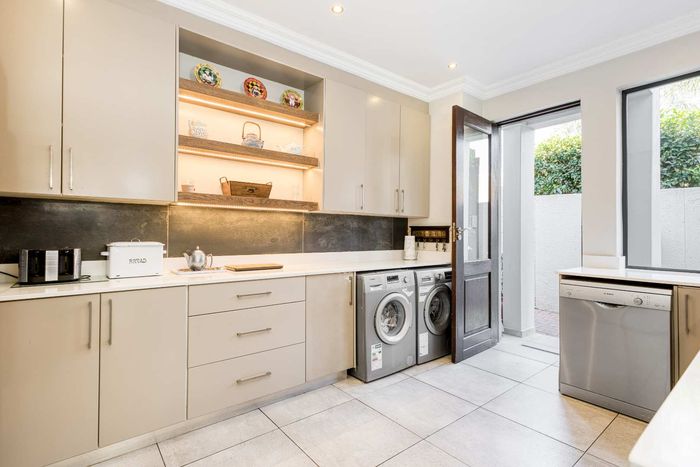 Leafy Mykonos complex offers relaxed family living with treetop balcony views and private irrigated garden plus sparkling pool. Cutting-edge Caesarstone kitchen; three bedrooms, 3.5 baths, double garage.