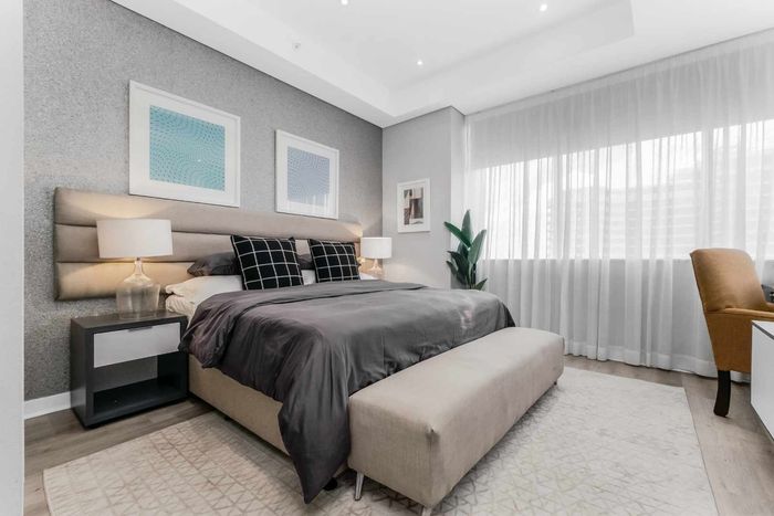 Enjoy executive city living in Sandton’s premier precinct, steps from dining and finance hubs — fully furnished with Miele kitchen, two bedrooms, 2.5 baths, two covered parking bays.
