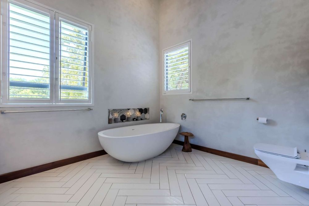 5 Magnificent light filled bedrooms and full en-suite bathrooms, with flow being a key element, all open up onto their own sections of the garden. The master suite is luxuriously spacious boasts a dressing area and a centre island. The en-suite bathroom has his and hers vanities enjoys a massive walk in shower and free standing bath.