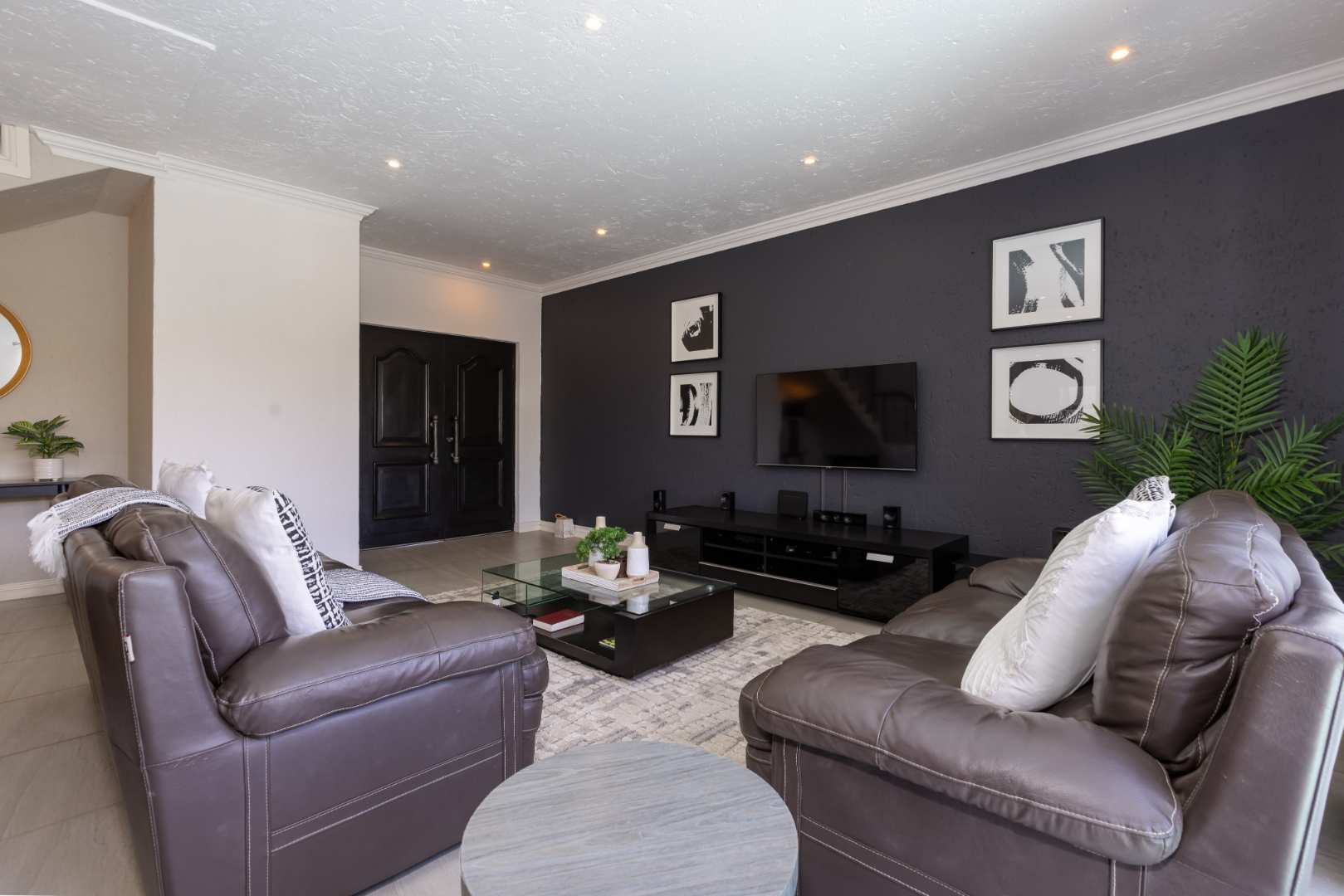 This lovely private residence offers the following: Double automated garage with direct access into the kitchen plus ample parking space for your visitors, invertor system with lithium battery assists the home during power outages plus the home is fibre enabled.