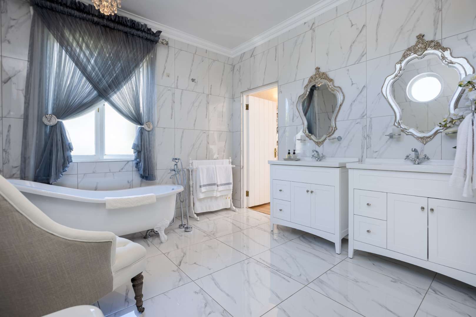 The stunning staircase lures you onto a landing, which branches off onto 3 delightfully sized bedrooms all with their own Juliette balconies and en-suite bathrooms (MES). The spectacular master bedroom has a fabulous warm feeling to it. It boasts an unmatched dressing area that is any ladies dream plus a full en-suite bathroom with double vanities, spacious walk-in shower and Victorian bathtub. The upstairs floor plan is complete with a built-in coffee station.