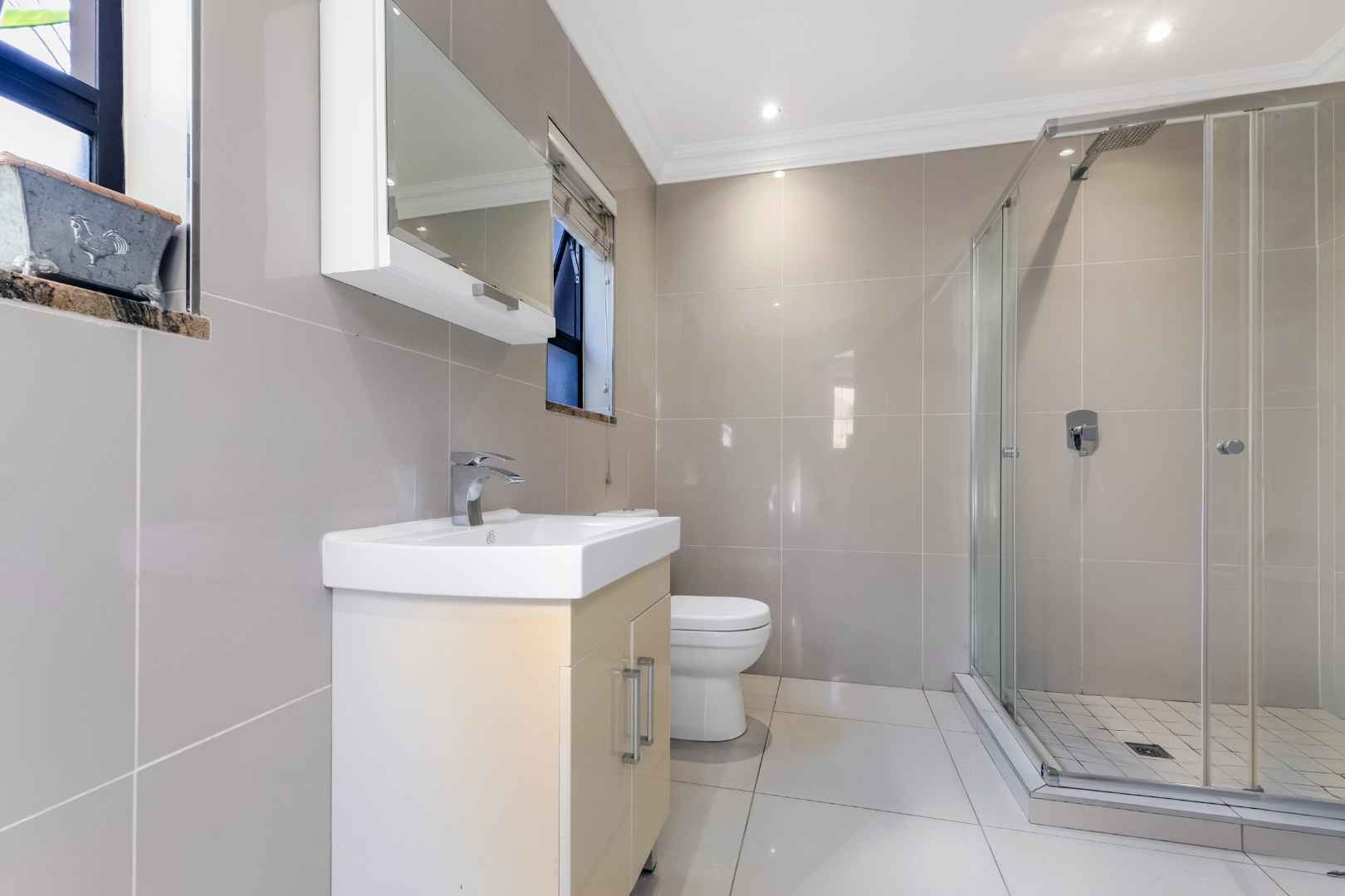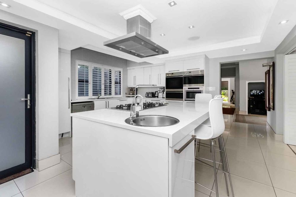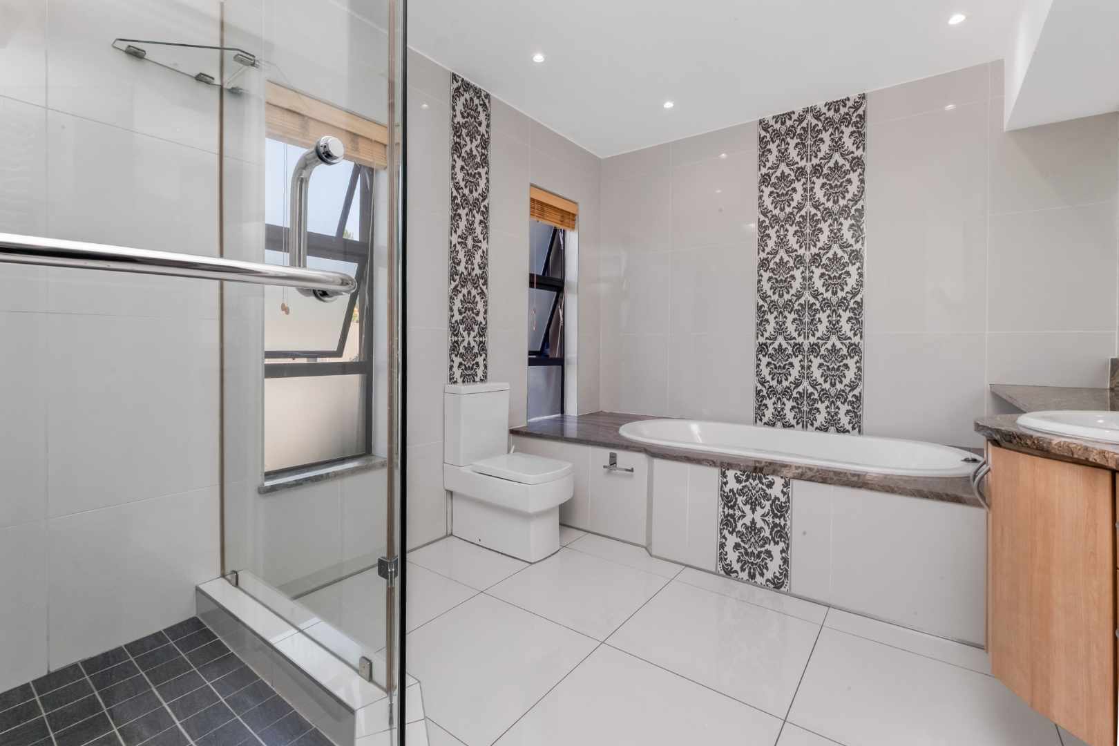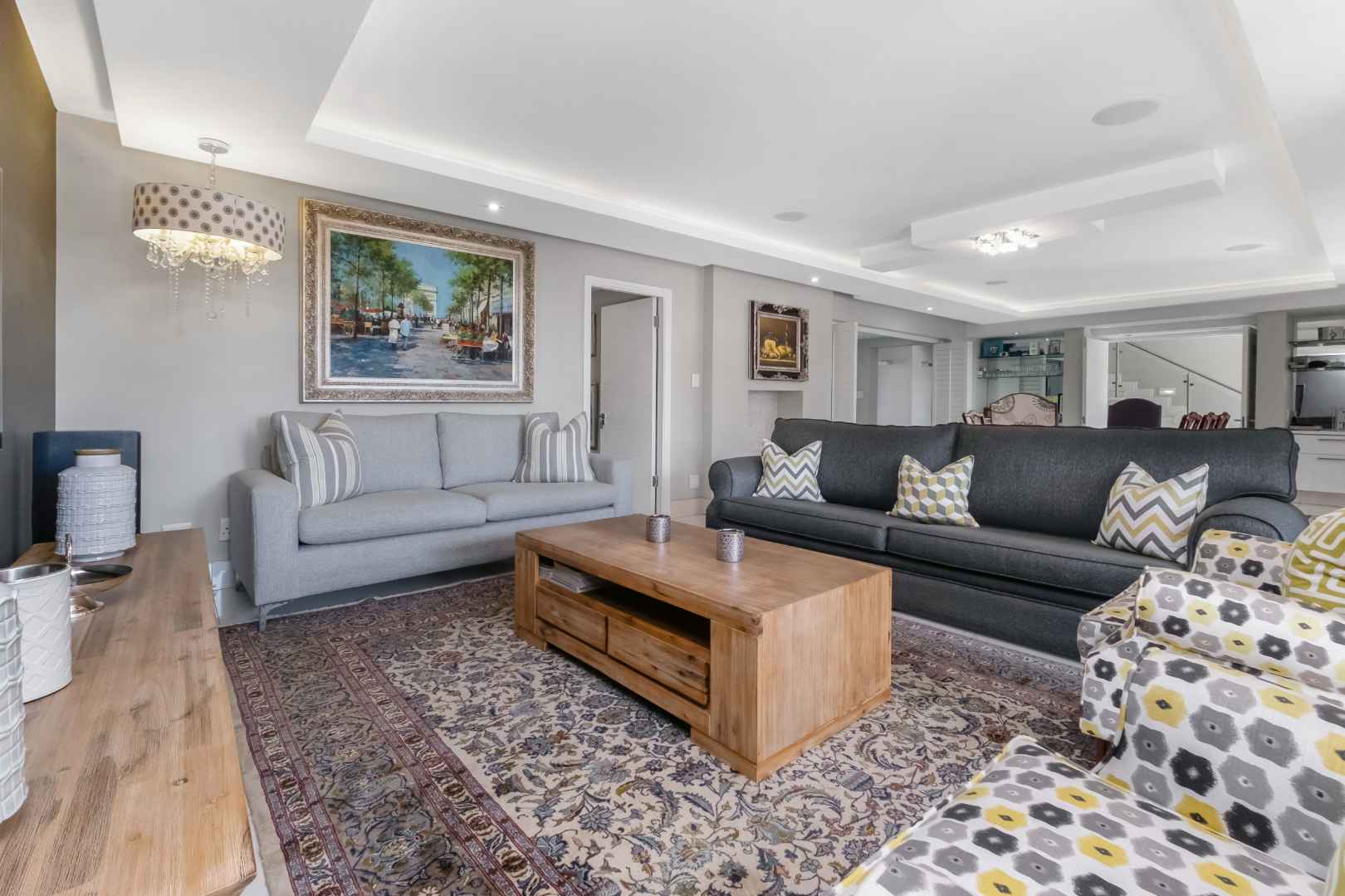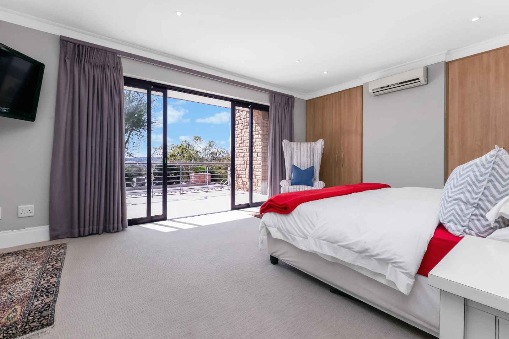 A gorgeous entrance boasting love and light flows onto 3 grand living spaces, all oozing with loads of natural rays of light and an indoor / outdoor living space feeling. This home is perfect for family living and entertaining. A open plan dining and lounge area with an eye-catching gas fireplace spills out with sliding doors onto the wrap around entertainers patio with a built-in braai boasting a pretty outlook of the manicured irrigated garden and sparkling decked swimming pool - creating a beautiful ambiance for your evening dinners. Entertainers Lounge and fitted pub is an ideal cigar lounge setup, boasting rich finishes, ambient lighting, and a premium bar. Designed for comfort and sophistication, it offers the perfect retreat for connoisseurs and casual guests alike.. Whether for private events, quiet indulgence, or lively social gatherings, this space delivers timeless elegance and an unforgettable atmosphere. Awe-inspiring open concept kitchen boasts Caesarstone countertops, MIELE gas hob with electric eye-level ovens and extractor fan, convection microwave, double door fridge space, prep-bowl, a separate laundry with under counter space for 3 appliances, a pantry cupboard, breakfast bar/centre island, plus ample built-in soft touch cupboard space. The downstairs floor plan is complete with a guest suite with an en-suite bathroom spilling into a private open patio, a private study, under staircase storage space and a guest cloakroom.