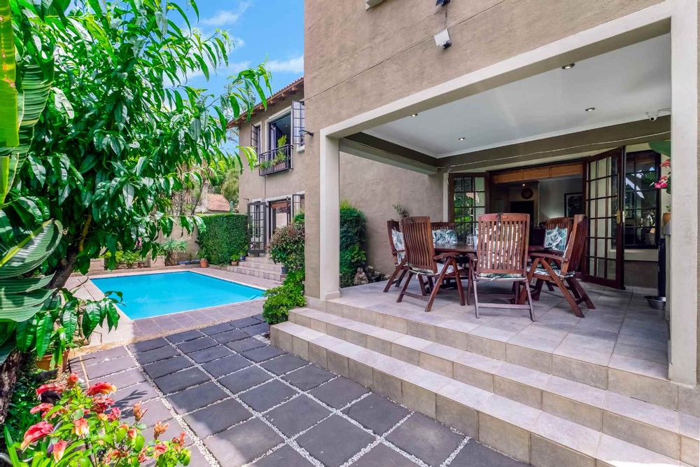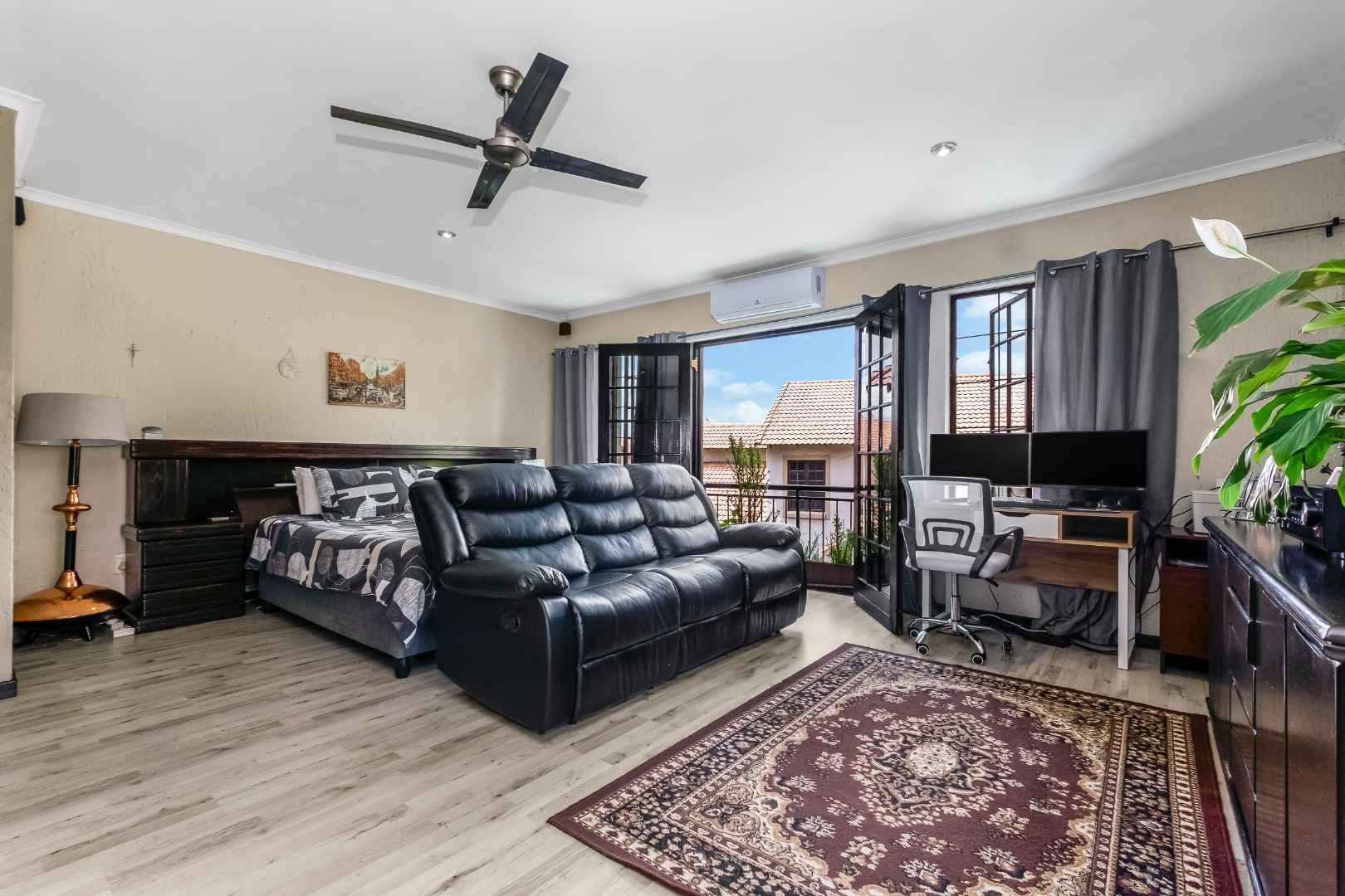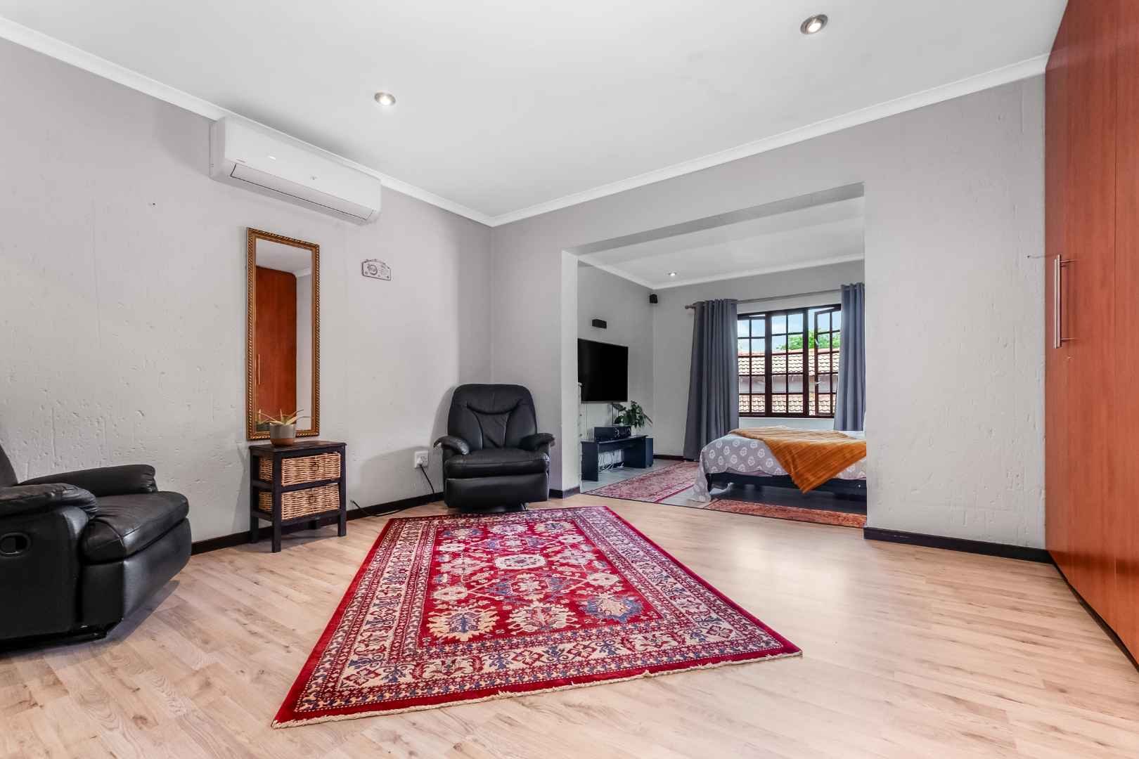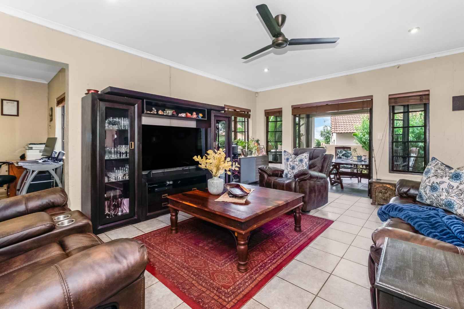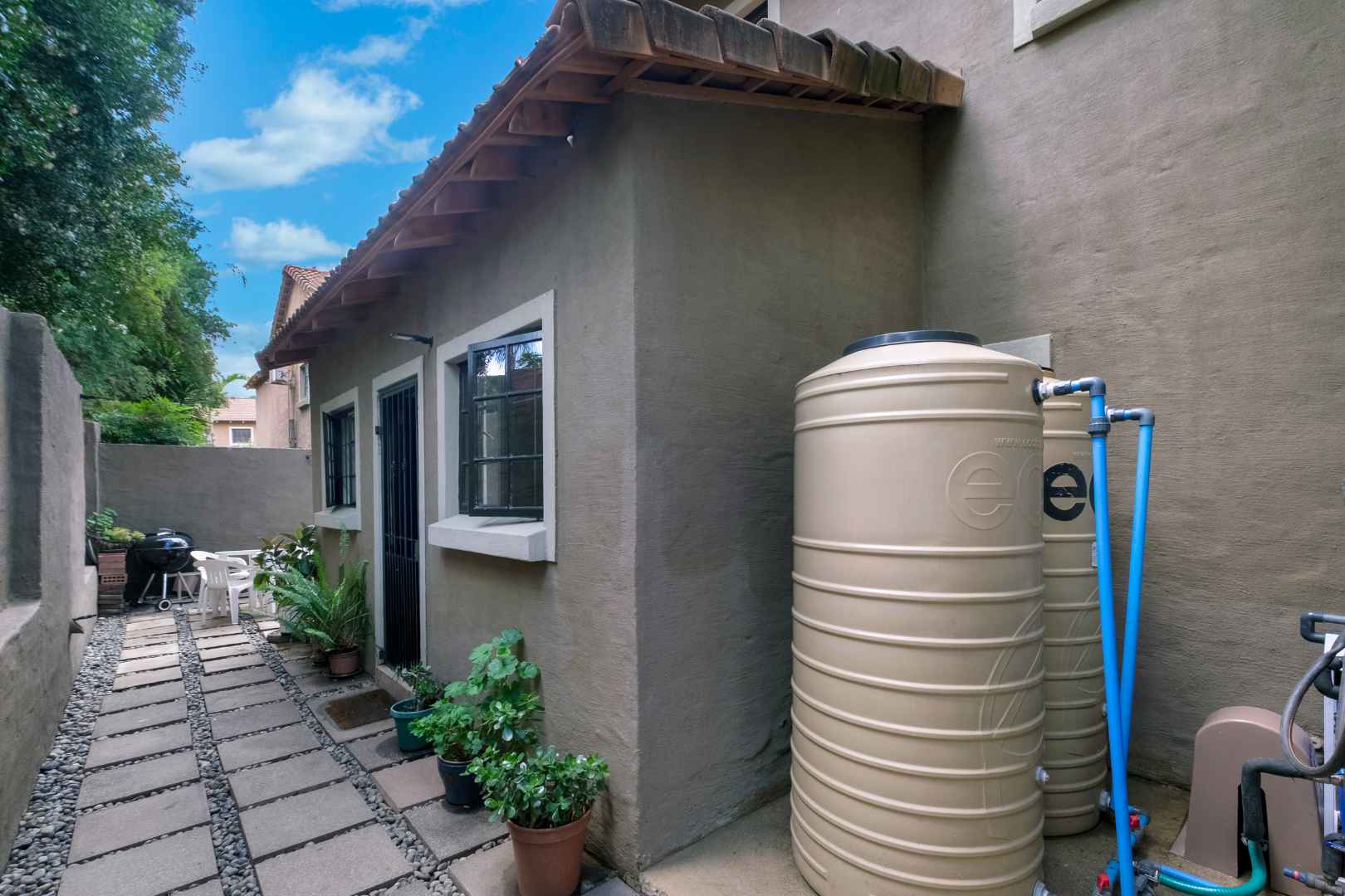 This entertainers delight offers the following: Double automated garage, ample parking space for visitors, 2 inverters with 4 lithium batteries plus 12 solar panels, backup water tanks with booster pump and filtration system, 1 x solar geyser and gas geyser, staff accommodation with a shower, cameras that are monitored and controlled vis a cellphone, prepaid electricity, excellent security plus the home is fibre enabled.