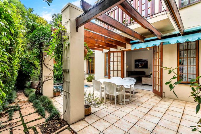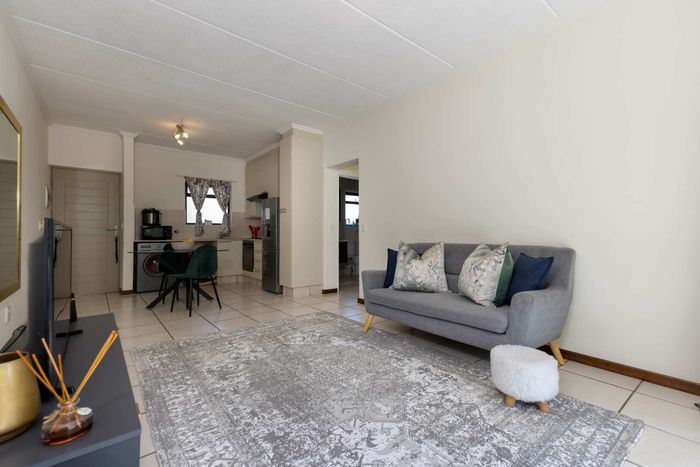 Three-bedroom home with open plan living, garden, pool, and garage in a secure Lonehill complex. Close to amenities.