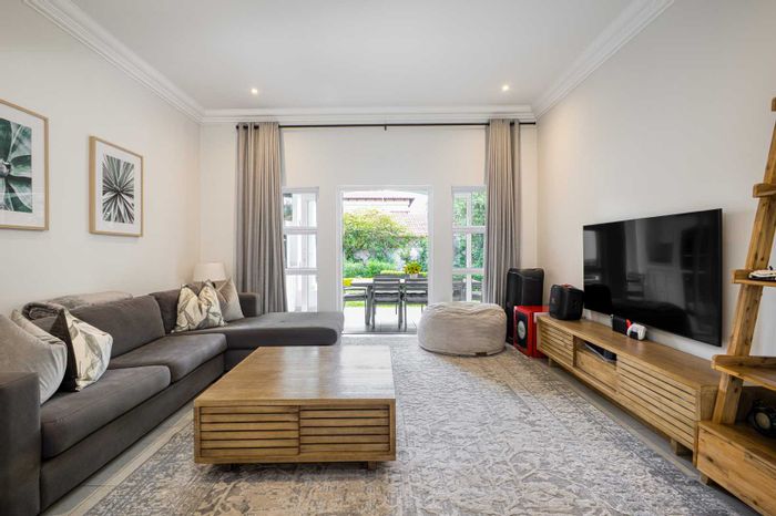 Resort-style family living in The Fields South Estate, steps from Dainfern Square; open-plan living with gourmet kitchen, dedicated staff accommodation, three en-suite bedrooms, 3.5 baths and double garage.