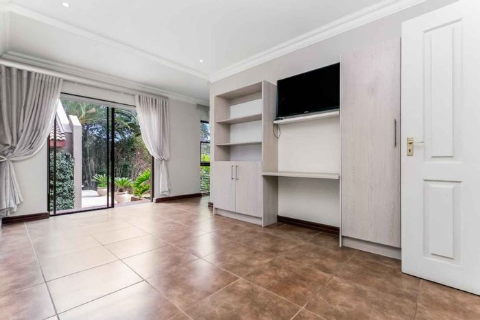 Family home in Fourways Gardens Estate with open floor plan, spacious bedrooms, garden, pool, and staff accommodation. Ideal for families.