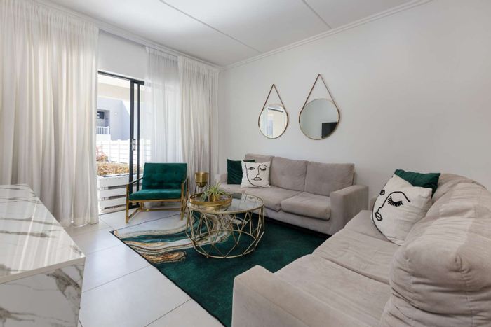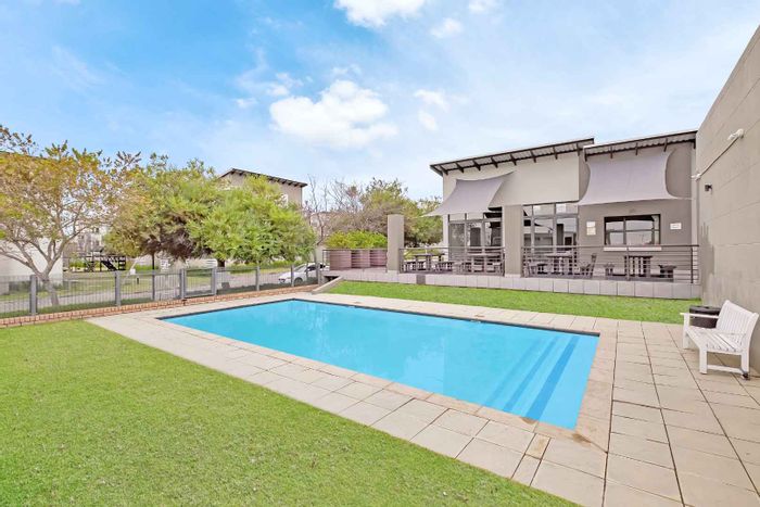 Townhouse in Fourways Garden Villas with private garden, three bedrooms, two bathrooms, and access to communal amenities.