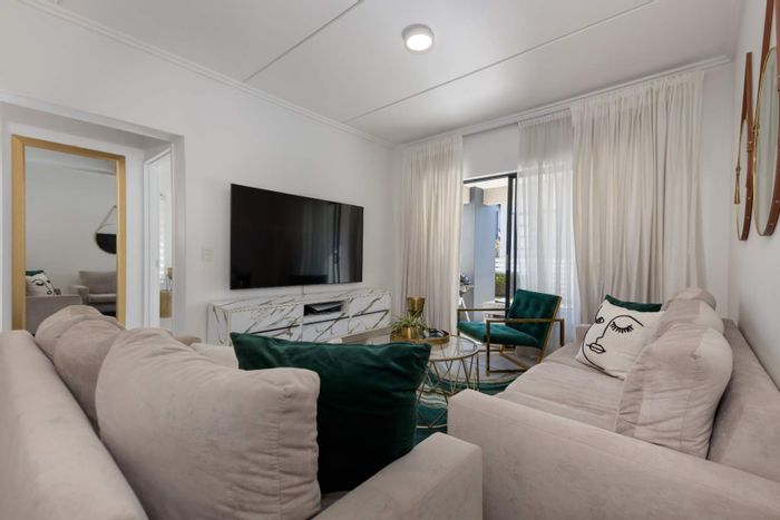 Modern 2 bed, 2 bath apartment in secure complex with balcony, modern kitchen, and amenities. Close to Fourways precinct in Johannesburg.