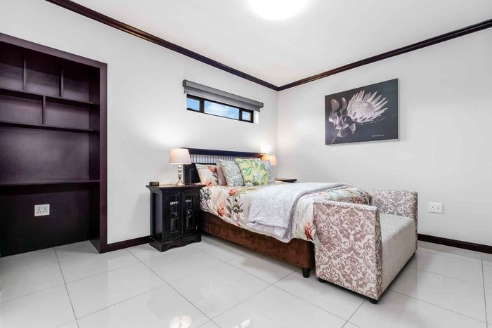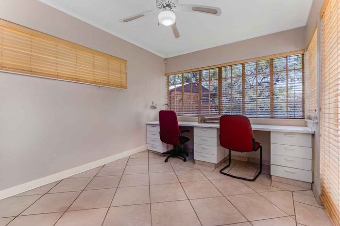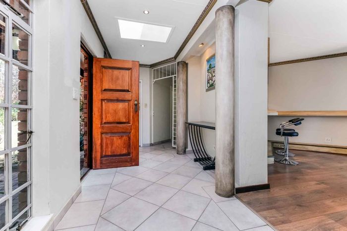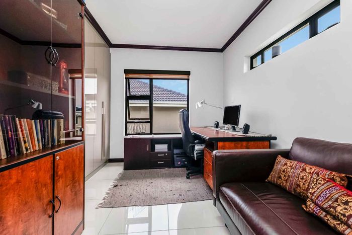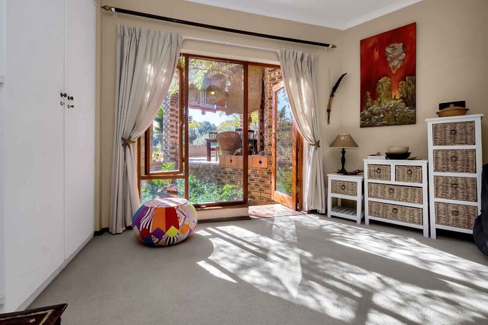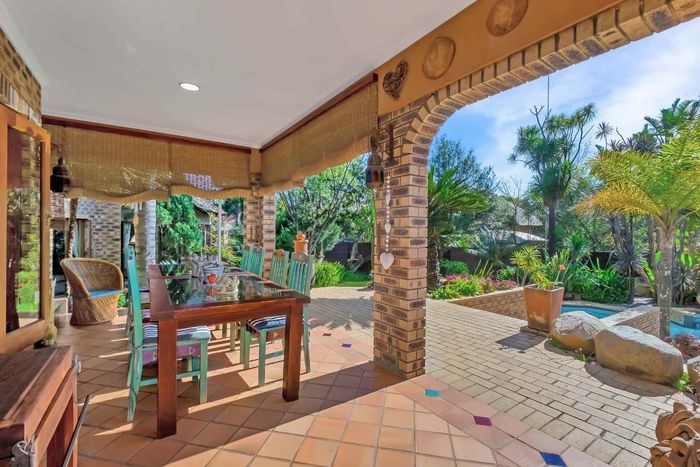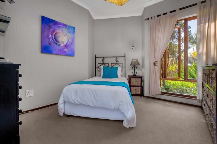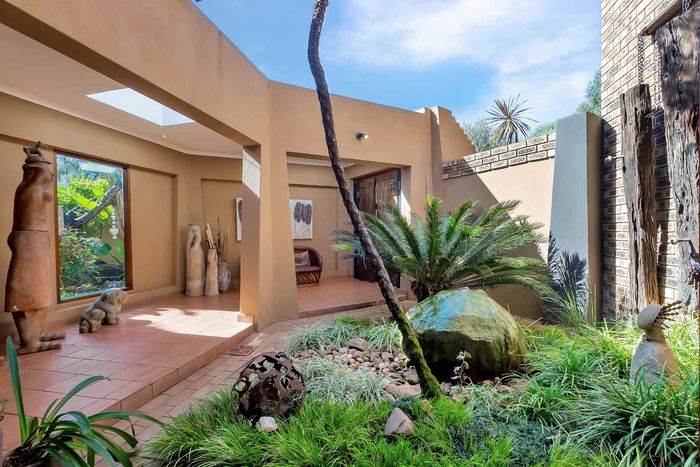 Family-focused entertainer in secure Dainfern Valley, opposite the greenbelt park — covered patio with built-in braai, pool and garden for effortless outdoor living; five bedrooms, 4.5 baths, three-car garage.