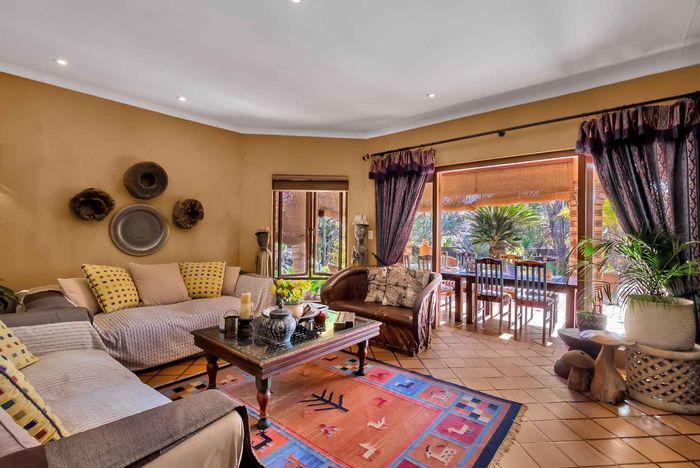 Entertain effortlessly on an elevated Dainfern Golf Estate ridge with panoramic Magalies and course views, expansive established garden, outdoor entertainment areas, chef’s kitchen and three ensuite bedrooms.