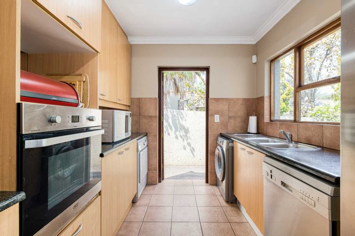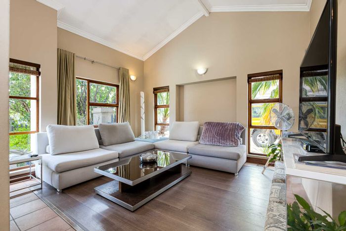 Relax in secure Soho Lofts Grand, Beverley, moments from Dainfern Square and Fourways. Open-plan lounge spills onto covered patio and pet-friendly established garden; Caesarstone kitchen.