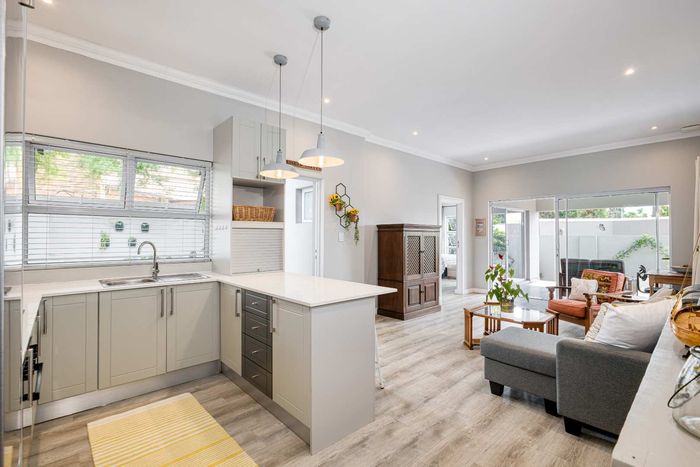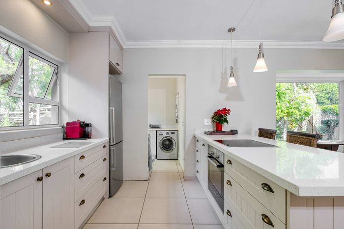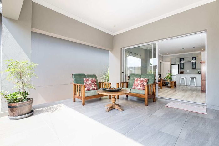 Tranquil Dainfern Golf Estate village life with direct greenbelt access, open-plan living. Entertain in ultra-modern kitchen and enclosed patio with built-in braai; 4 beds, 2.5 baths, double garage.