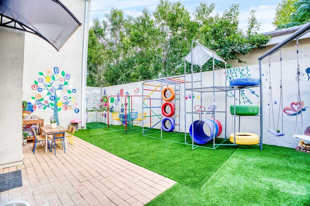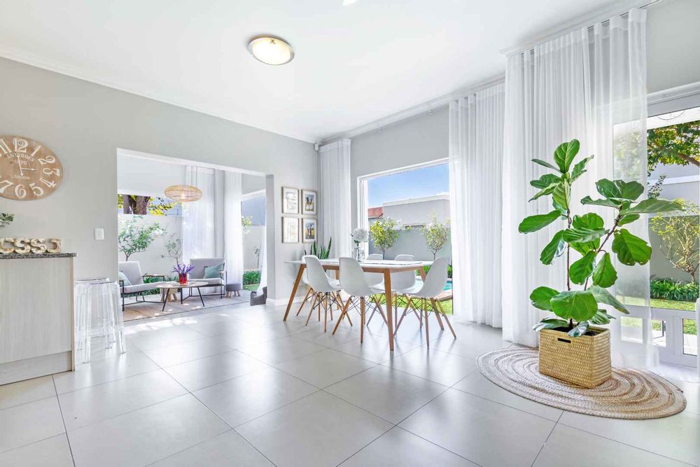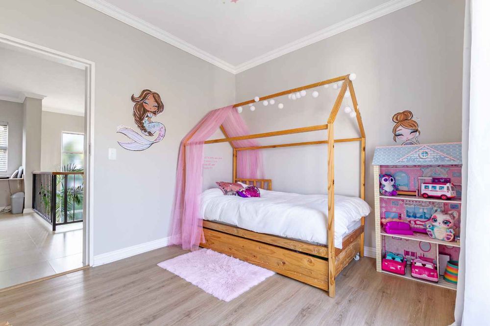 The beautifully established garden is adorned with fragranced rose bushes and lush lawn. An added perk of this property is the hidden secret garden at the back of the house for little ones, a safe and secure space where children's imaginations can run wild as they play and enjoy the outdoors. The solar-heated swimming pool is complete with a heat proof pool cover, offering you year-round enjoyment.