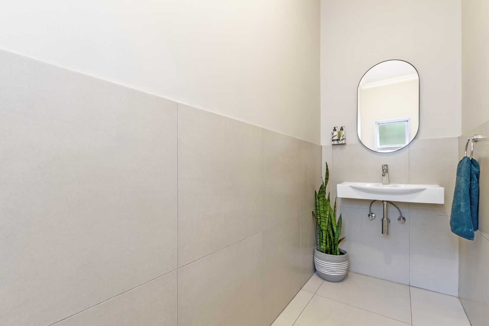 A welcoming landscaped entrance, with established white iceberg roses lining the pathway into the home. The entrance flows into the well designed open plan living rooms. White aluminium stack back doors have been newly installed in the family lounge, formal lounge and dining room ensuring that there is a seamless flow between indoor-outdoor living. The home boasts a beautiful dining room that overlooks the peaceful garden and sparkling swimming pool.