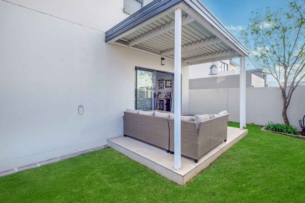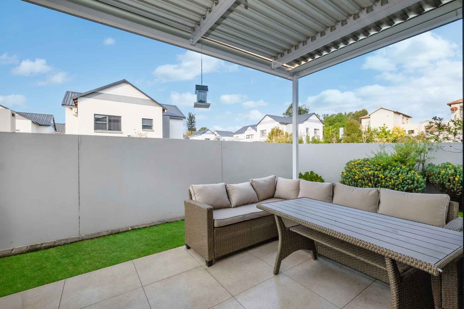 Situated is a sought-after secure Complex in Broadacres, this bright and beautiful home showcases modern elegance at every turn. Step into the spacious reception area, where natural light fills the space and leads you effortlessly to a covered patio, perfect for entertaining, overlooking a wraparound garden. The chic, designer kitchen boasts built-in inverter fridges, Smeg gas hob, eye-level oven, fitted microwave and sleek Cesar-stone countertops. A separate scullery with space for two appliances keeps the living area clutter-free.