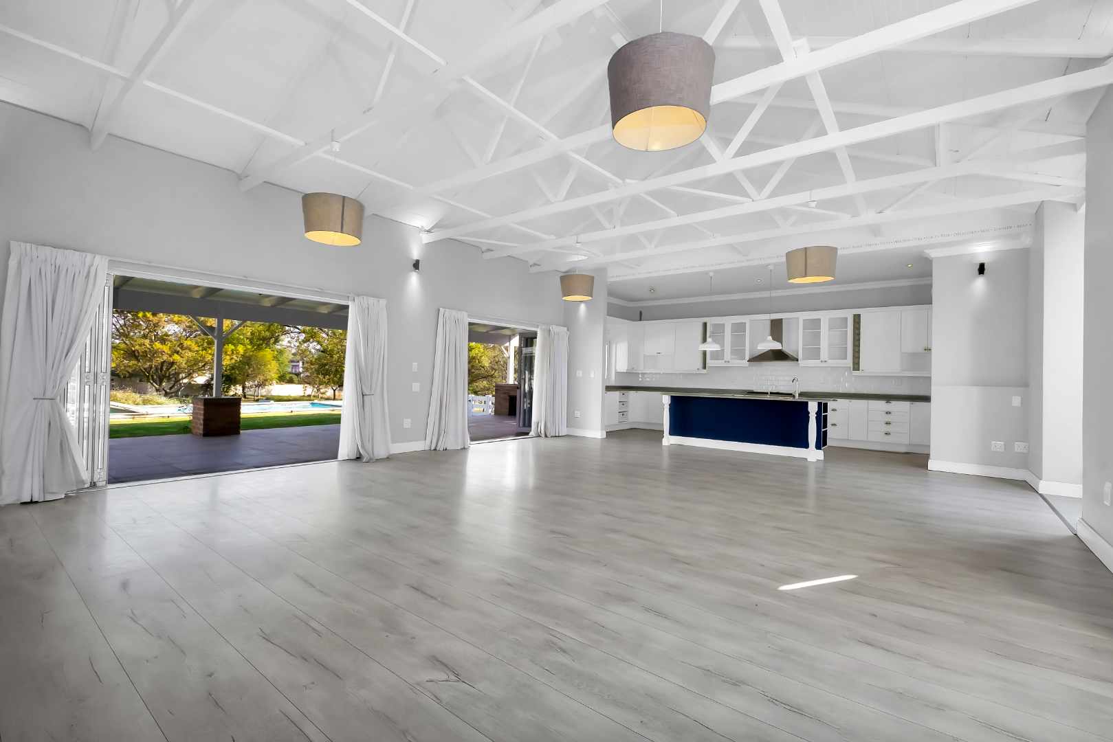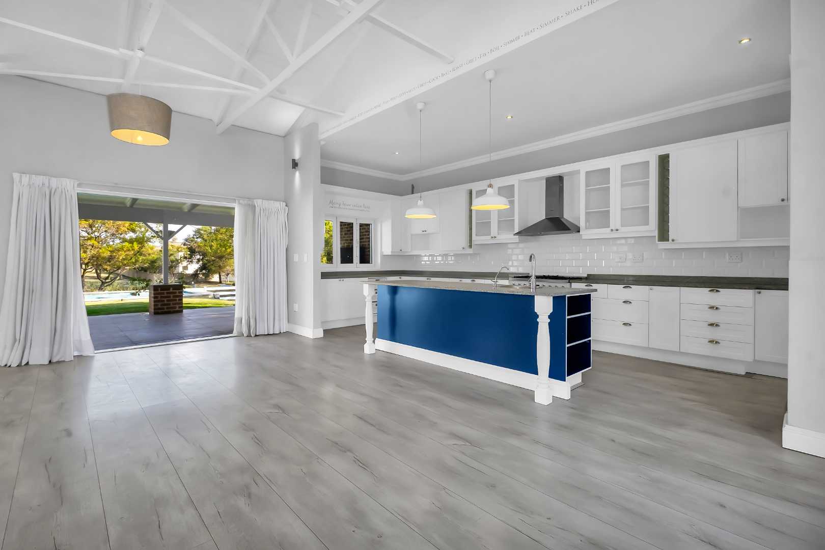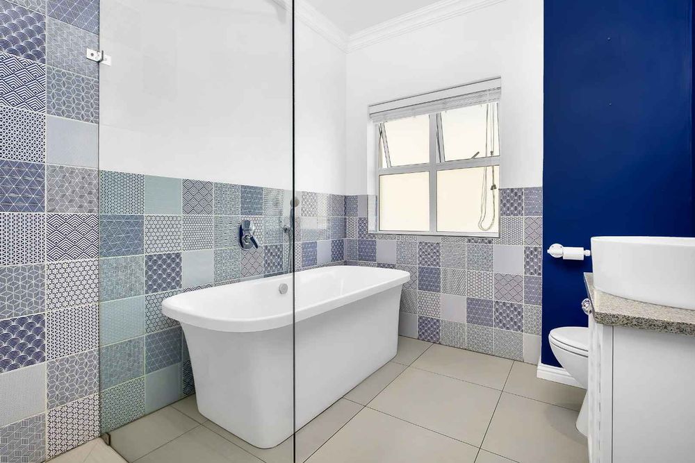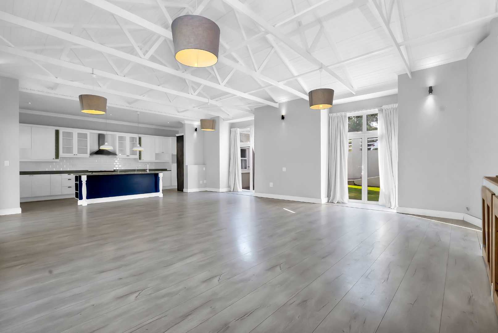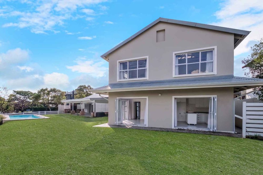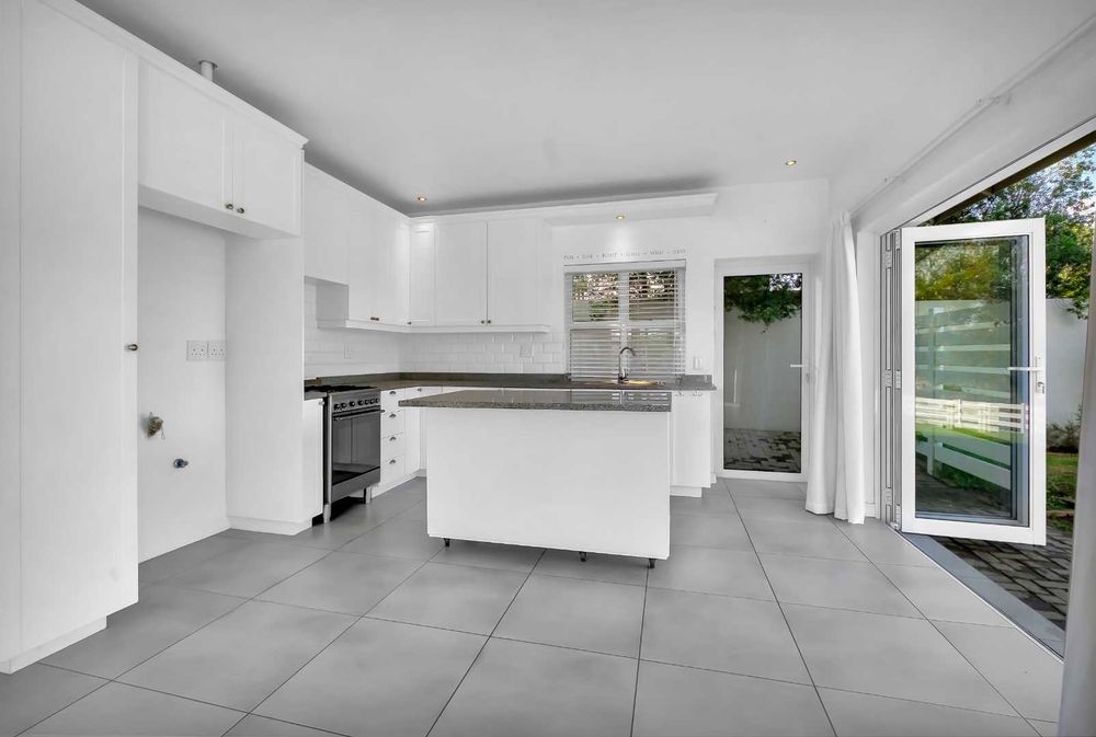 This impressive home for an extended family overlooking a dam is in the sought after Cedar Creek Estate. With its welcoming exposed trusses, the home boosts spacious light and bright open plan reception rooms with stacking doors opening to large entertainer patio with a built-in braai over-looking an inviting pool and mature garden. The well-appointed country style kitchen has a central island with a washing basin ideal for food preparation, Smeg 6 burner gas hob, granite tops, separate scullery, ample cupboard storage and space for 2 appliances.