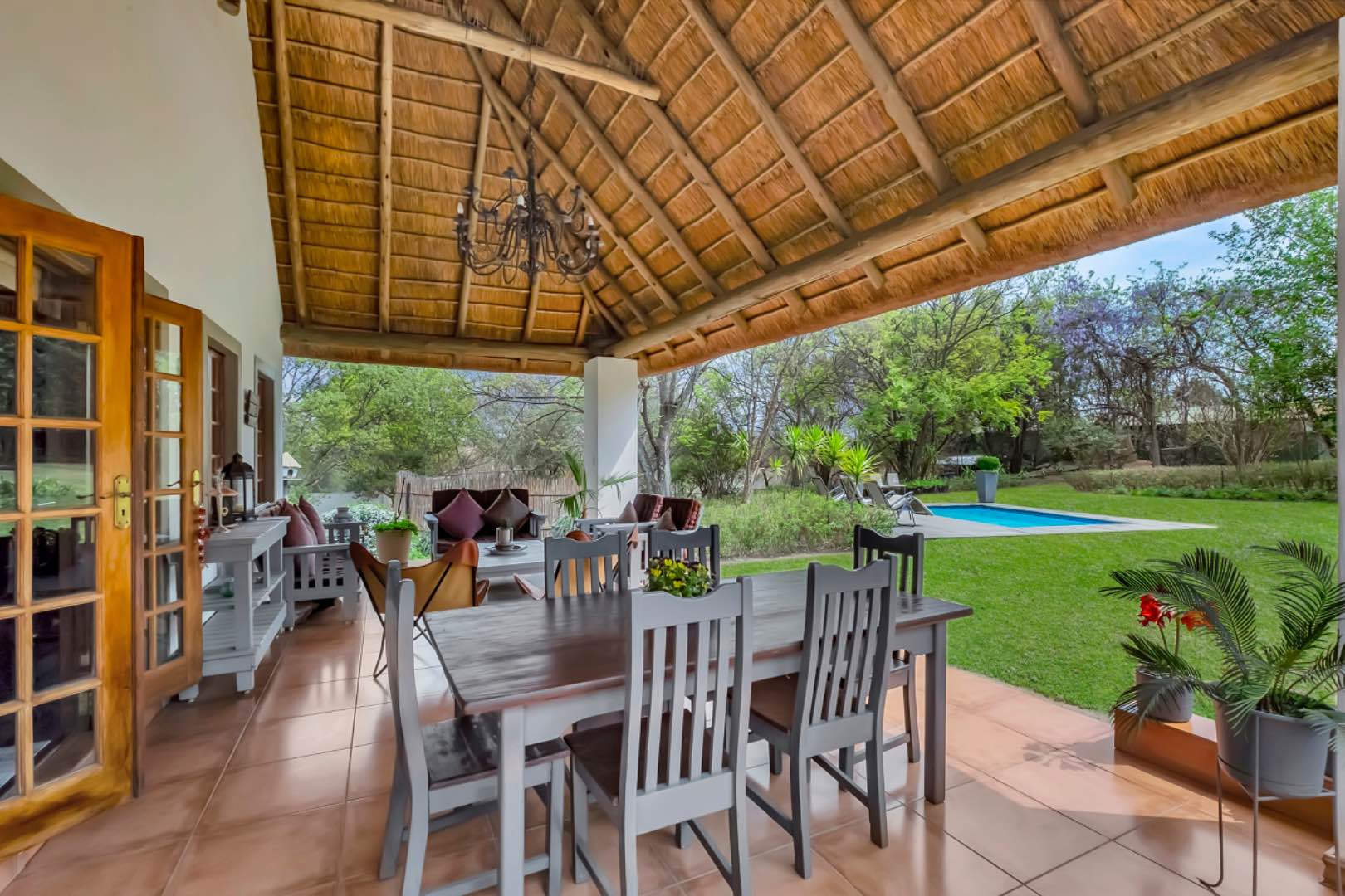 The garden is well-maintained, with lush landscaping providing a tranquil setting , as well as a sparkling pool that complements the serene garden, perfect for cooling off during summer days, the home has a Boma and is a beautiful focal point in the garden, adding to the outdoor space.