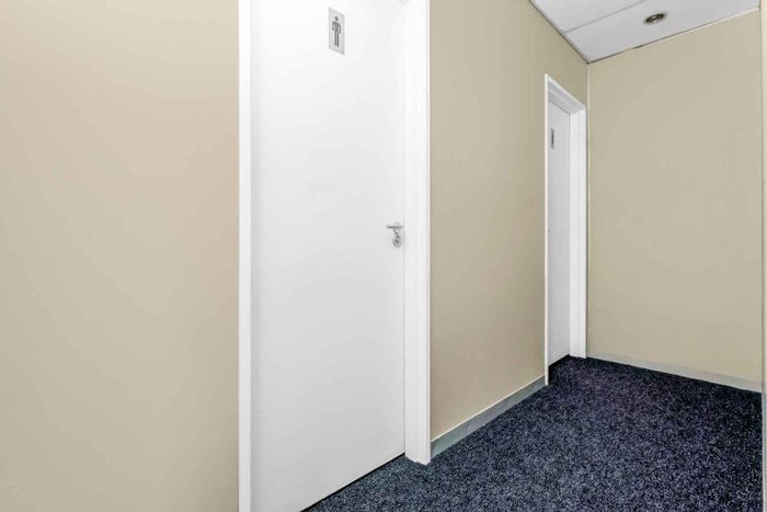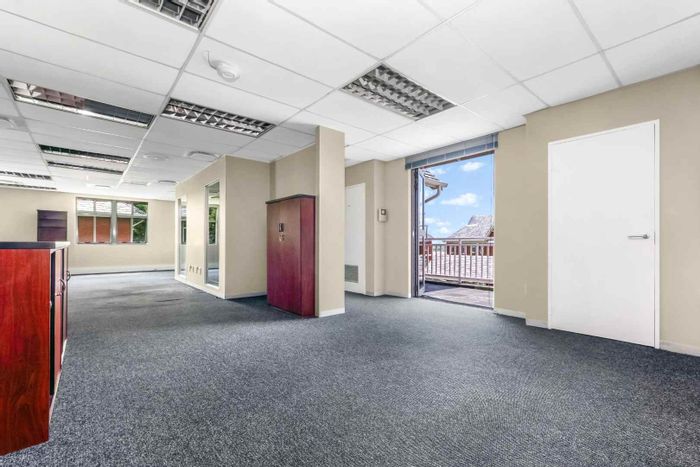 Focused, secure office in Mulberry Hill Office Park with parkland charm and attentive security; north-facing, light-filled space with large balcony overlooking gardens and Dainfern, plus 3 covered/3 open bays.