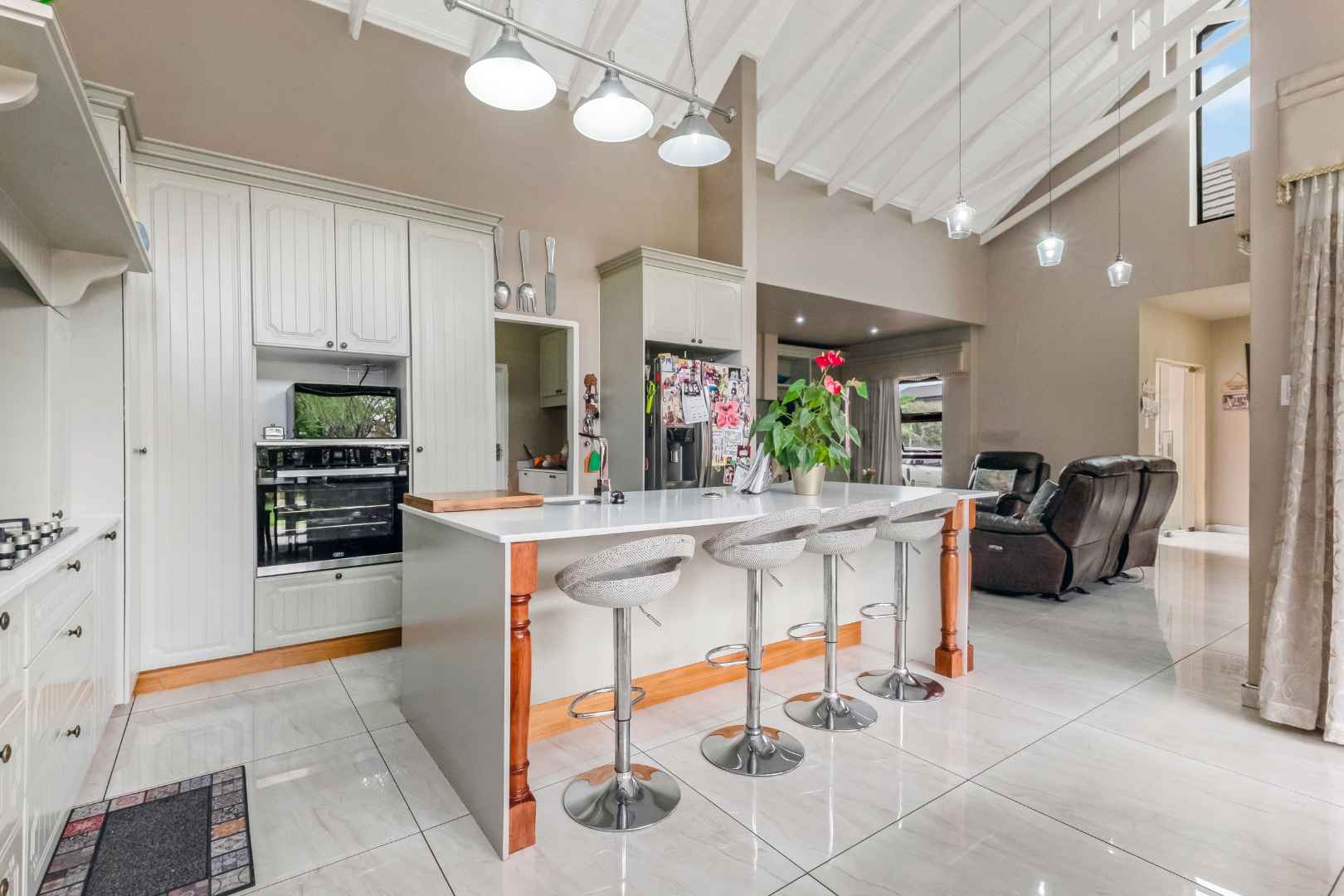 This modern gem offers the following: Double automated garage with direct access into the home, ample parking space, Sunsynk inverter system with solar panels, staff accommodation, pets are welcome, plus the home is fibre enabled.