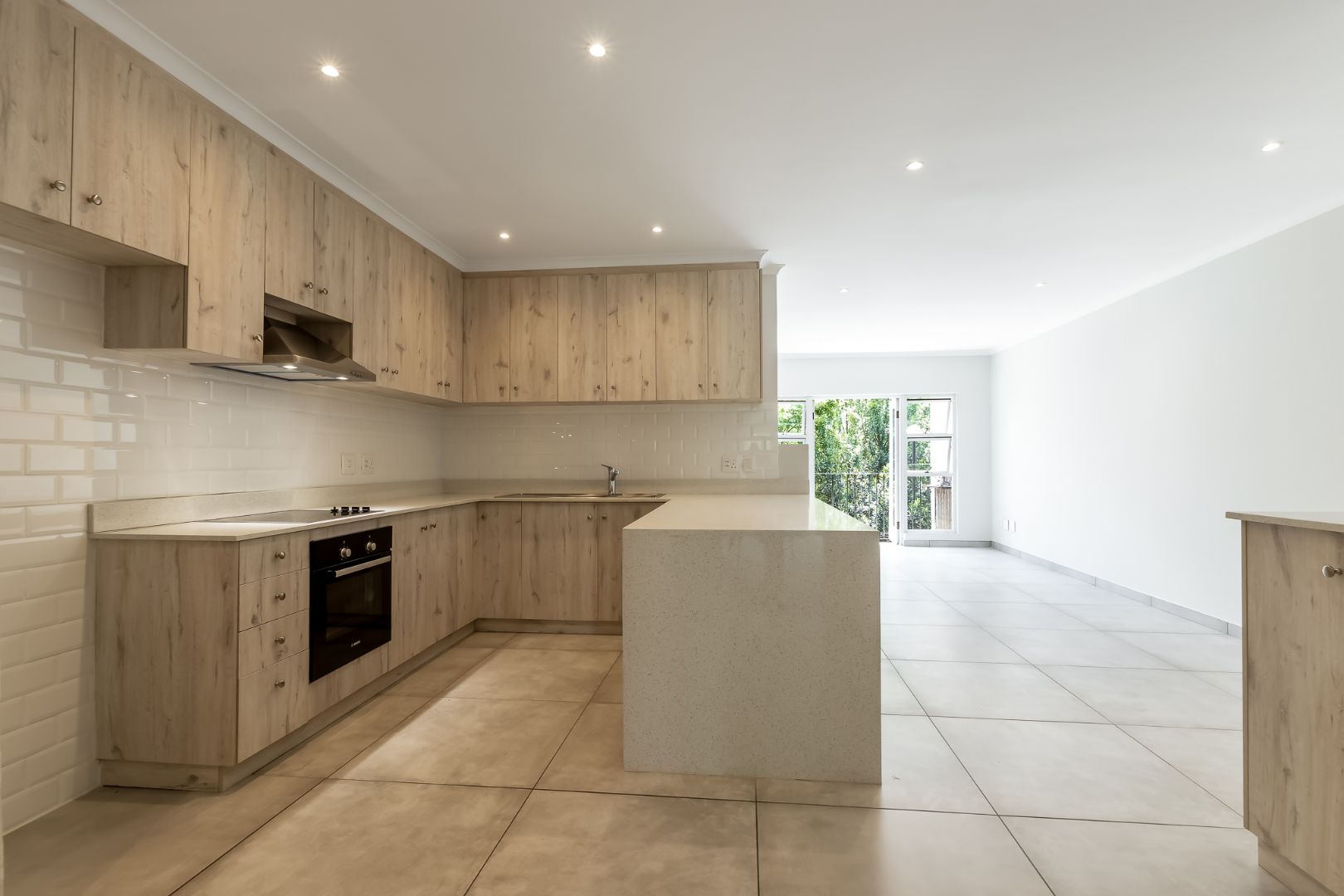 The sleek, contemporary kitchen features clean lines and a stylish finish, seamlessly flowing into the open-plan dining and lounge area. This inviting space is perfect for both relaxed living and effortless entertaining.
