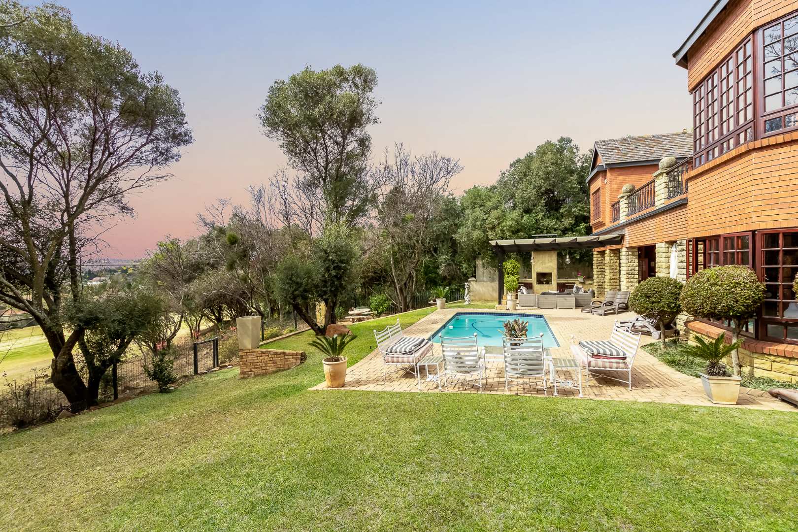 Resort-style entertaining on a private greenbelt in Dainfern Valley, with expansive garden and infinity-edge pool; open-plan kitchen, pyjama lounge, four bedrooms, 3.5 baths and double garage.