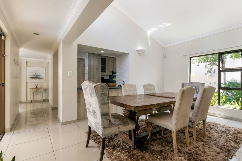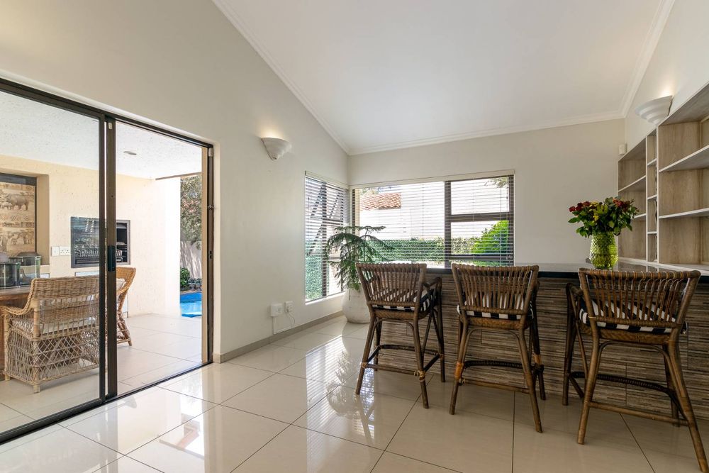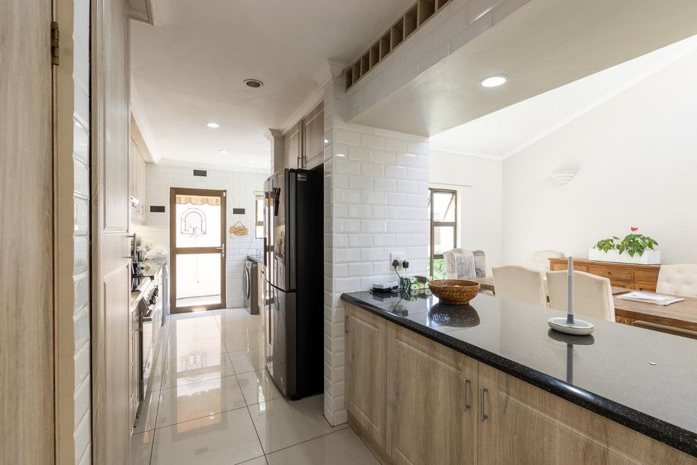 This modern kitchen is any chef’s dream, featuring sleek cabinetry, granite countertops, top-of-the-line gas hob, an integrated scullery and walk-in pantry. The lovely breakfast bar makes this kitchen a true centerpiece, perfect for creating culinary masterpieces and preparing convenient meals. A warm cosy dining room spilling off the open-plan kitchen, completes this gem.