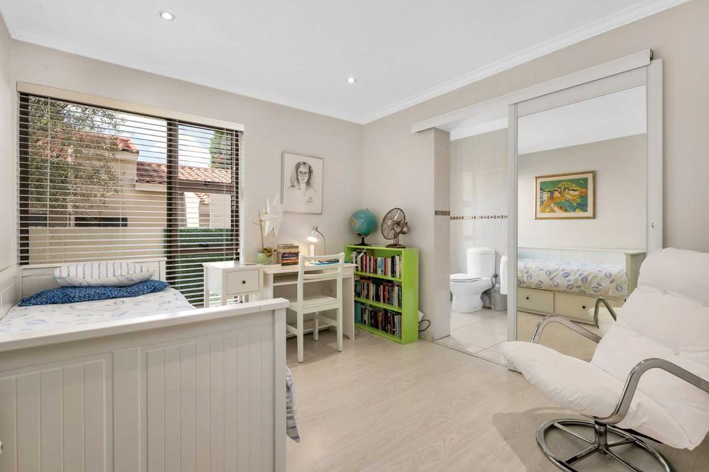 Accommodation includes three generous sized bedrooms. The master bedroom boasts a spacious en-suite with built-in cupboards and an air-conditioning unit. Two well-appointed bedrooms share a stylish full bathroom. Both bathrooms are tastefully designed with high-quality fixtures and finishes.