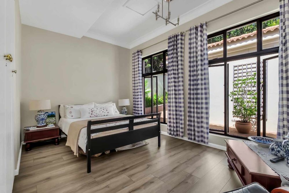 The four bedrooms are generously sized and thoughtfully distributed to maximise privacy. Upstairs, the master suite is a luxurious retreat complete with an air-conditioning unit, an open dresser and an en-suite bathroom fitted with a double vanity. Enjoy elevated views across Dainfern from the master suite balcony. Downstairs, three additional bedrooms fitted with built-in cabinetry, all sharing a central spacious bathroom.