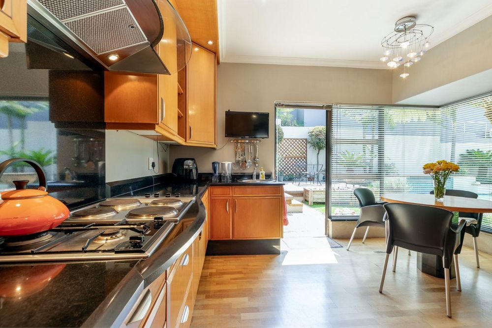 The functional kitchen is designed for both practicality and style, featuring ample counter space, sleek cabinetry, and modern appliances to make meal preparation a breeze. At the heart of the kitchen is a neatly appointed, sunlit breakfast nook, perfectly positioned by a large window that floods the space with natural light.