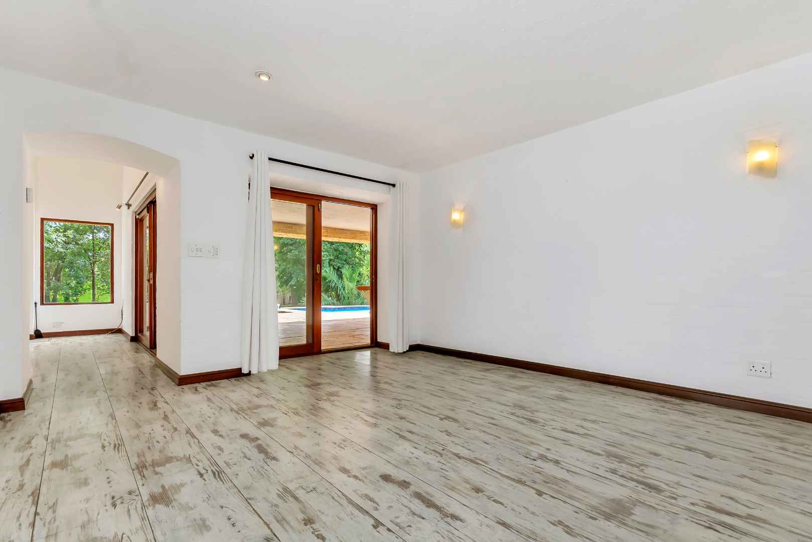 Each of the three spacious bedrooms boasts its own en-suite bathroom, fitted air-conditioning units and rich wooden flooring, creating a warm and inviting atmosphere. The master suite is a true retreat, featuring a private air-conditioning unit, a stylish dressing area and a cozy wood-burning fireplace, perfect for the chilly evenings.