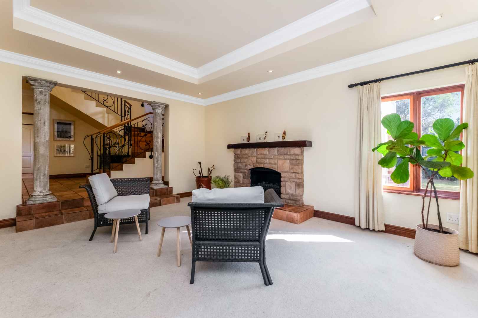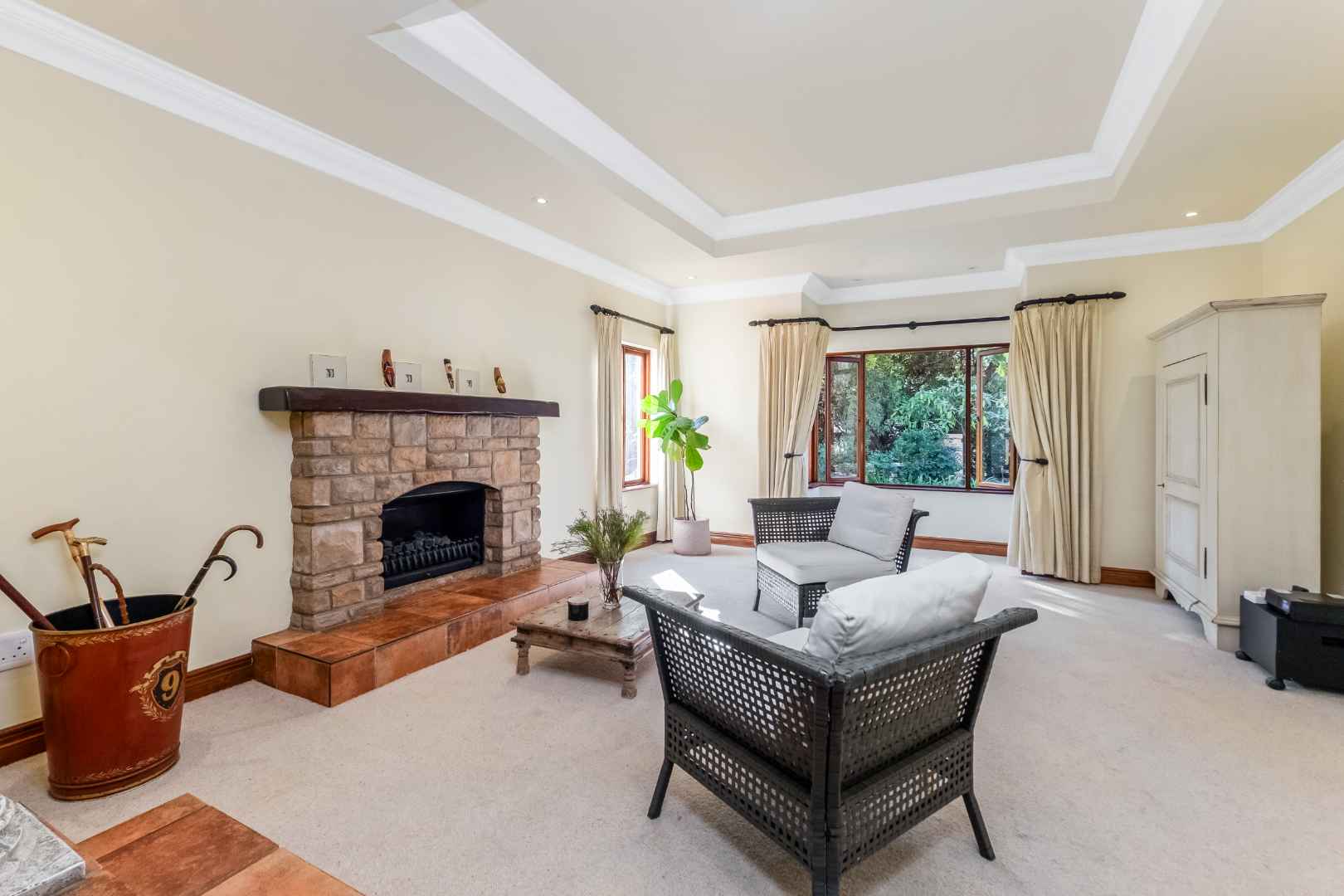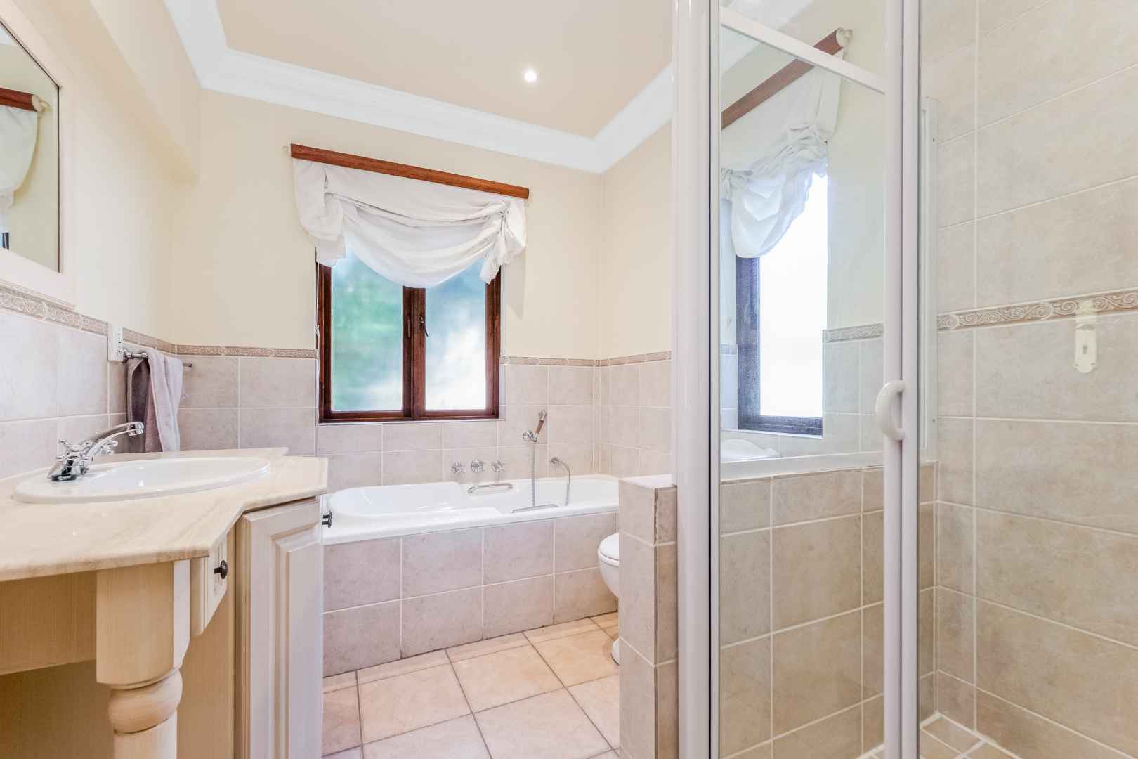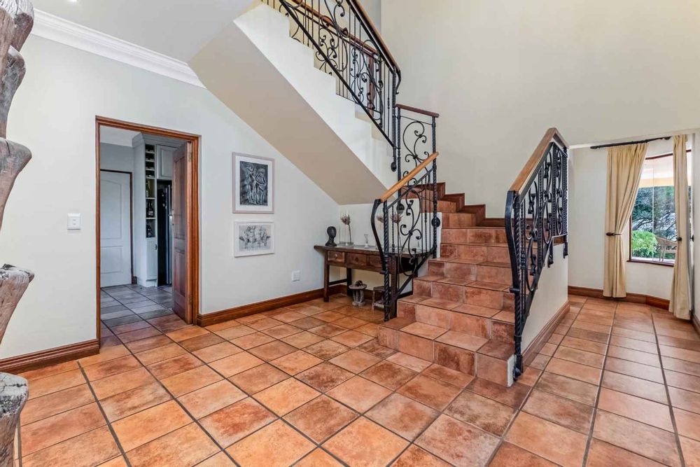This spacious and inviting home is designed for comfortable living and entertaining. The generous living areas include: a formal lounge boasting a cozy gas fireplace – perfect for relaxing on chilly evenings as well as a bright and airy family room featuring its own built-in cellar for your favourite collection. The elegant dining room offers ample space for memorable family gatherings and dinner parties. The Tuscan-style kitchen boasts granite countertops, a 5-plate Defy gas hob, separate scullery and spacious walk-in panty to ensure plenty of storage and prep space, while the cozy breakfast nook provides the perfect spot for casual meals.