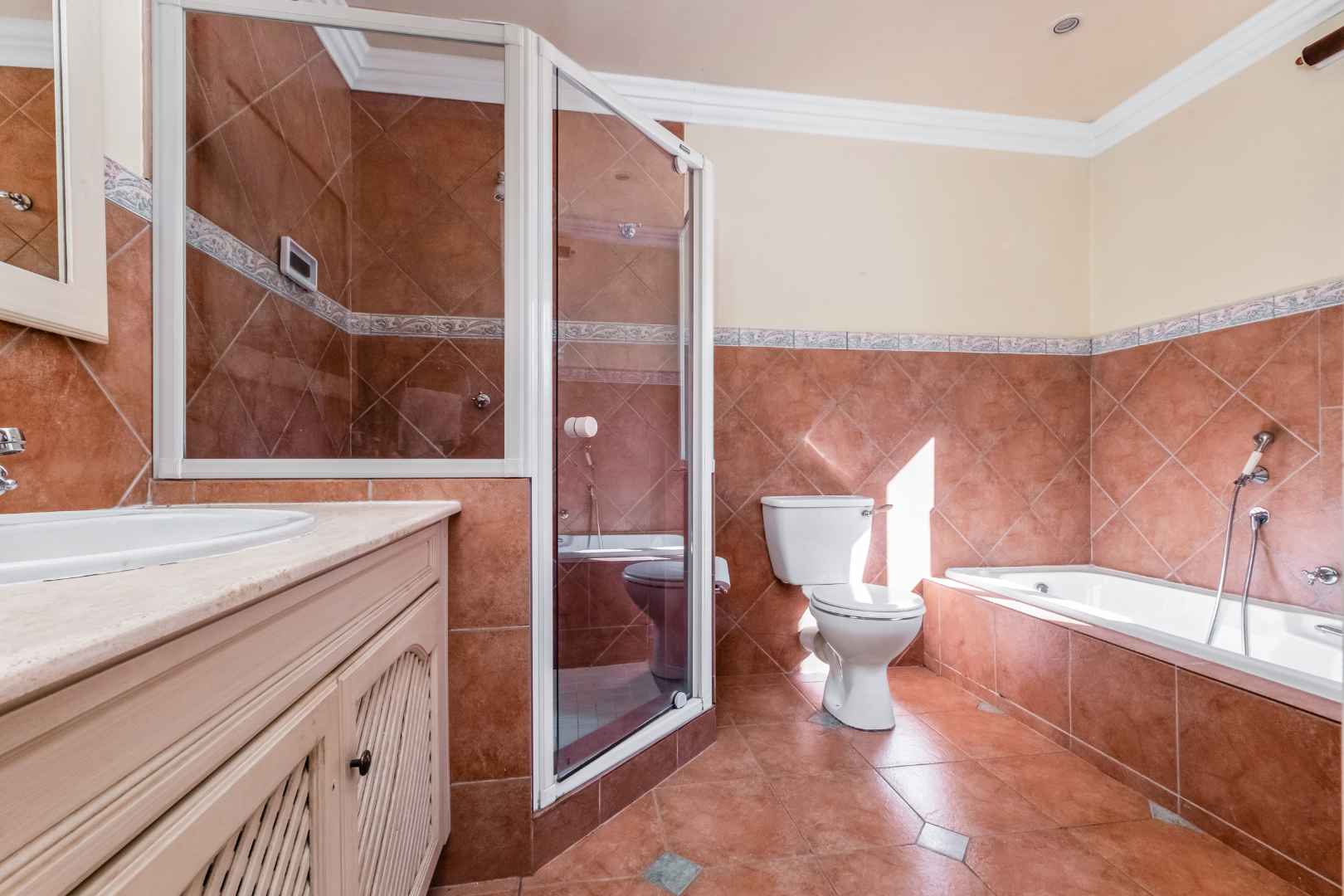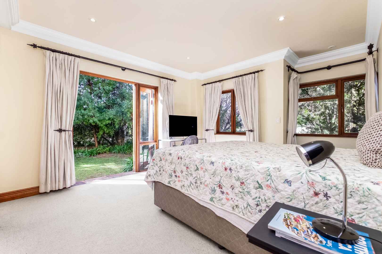 Upstairs, you’ll find four well-appointed bedrooms, all with built-in cupboards. The large master suite is a true retreat, featuring a spacious en-suite bathroom, an expansive open dresser, air-conditioning unit and a private, peaceful ambiance. The fifth bedroom is conveniently located on the ground floor, making it ideal for guests, extended family or use as a quiet home office.