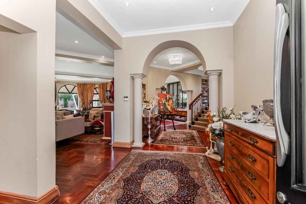 This classic residence is perfectly positioned on the golf course, offering serene views and oriented to capture the warm Northern light throughout the day. Set on a generous 2,453m2 stand, with an impressive home size of 1,120m2, this property combines space, elegance, and timeless design. Located within a peaceful village, the home provides an unrivalled setting for family living and entertaining and embodies refined estate living at its best.
