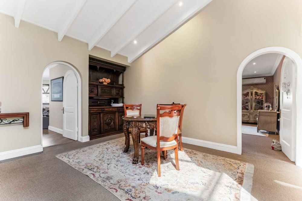 The spacious family room is ideal for relaxed living, complete with a fitted bar featuring custom wooden cellars and space for a bar fridge. These areas flow effortlessly to the outdoor entertainment space, ensuring a perfect balance between indoor comfort and outdoor living.