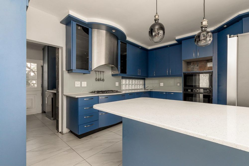This inviting home boasts an open-plan layout. A private formal lounge featuring a cozy gas fireplace offers the perfect retreat for quiet evenings or elegant entertainment. The dining room is practical, featuring a built-in server that adds style and convenience for serving meals. The TV room, fitted with air conditioning, flows seamlessly into the traditional-style kitchen, creating a warm and welcoming heart of the home. The kitchen is a chef’s delight, showcasing quartz countertops, a versatile center island that doubles as a breakfast bar, and a premium Smeg 5-plate gas hob. A separate scullery adds convenience and practicality, keeping the living spaces uncluttered and functional.