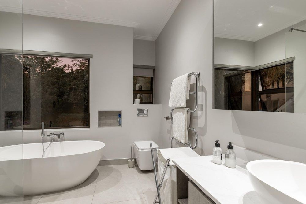 Welcome to a beautifully renovated 4-bedroom, 5-bathroom residence nestled within the sought-after Dainfern Golf Estate. This elegant home offers modern contemporary living with timeless charm, designed for comfort, convenience, and effortless entertaining.