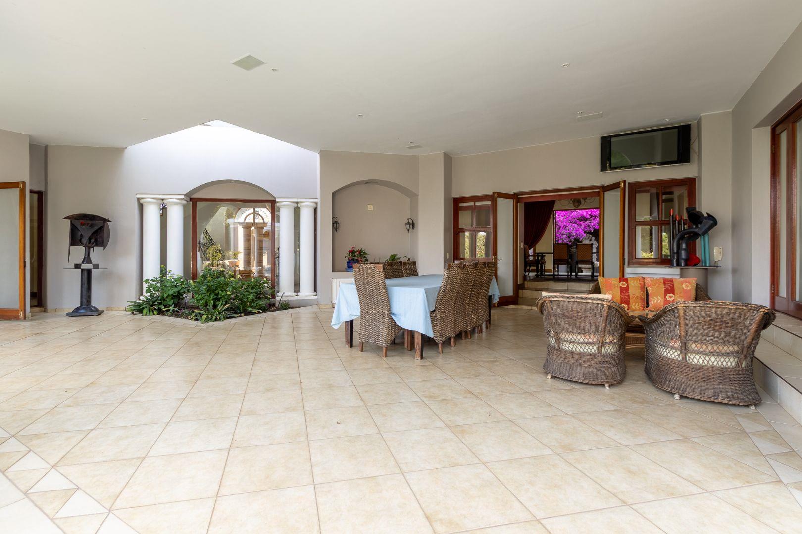 Set in the heart of the prestigious Dainfern Golf Estate, this striking residence makes an immediate impression with its bold architectural volumes, two double garages, and dedicated golf cart garage—perfectly tailored for estate living.