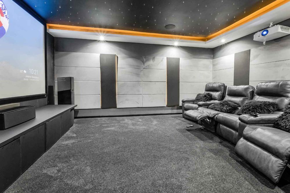The home features four generously proportioned bedrooms and three stylish bathrooms, complemented by a well-appointed pyjama lounge that doubles effortlessly as a work-from-home office. Designed with both family living and entertaining in mind, the expansive family room flows seamlessly into an entertainer’s haven complete with a private sauna and dedicated theatre room — creating a truly immersive lifestyle experience.