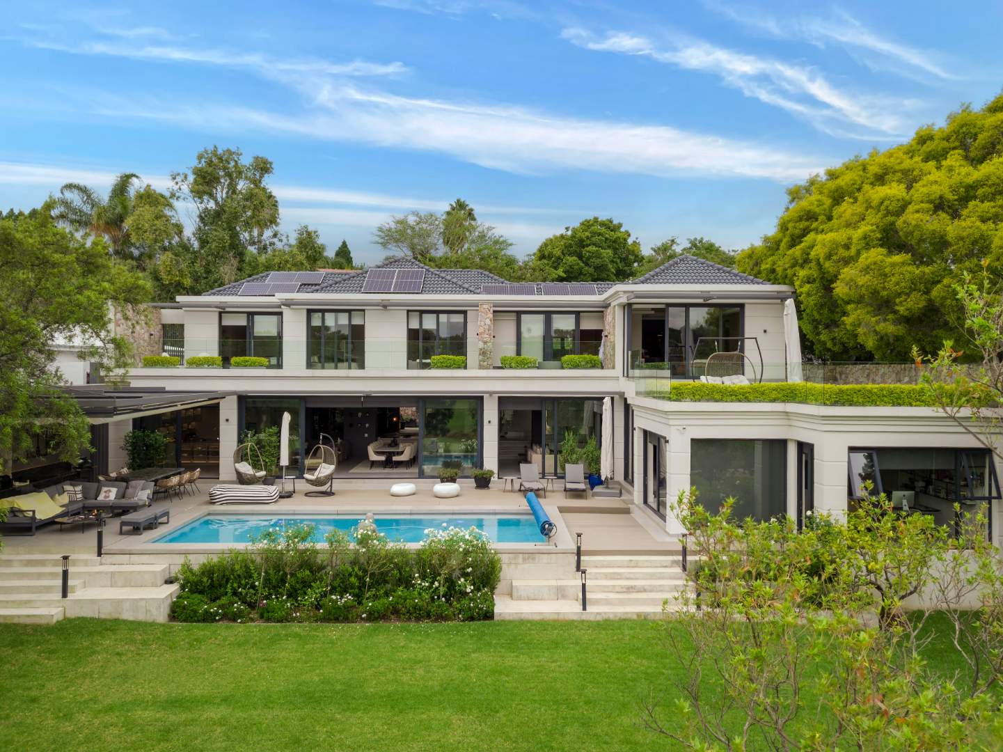 Located in a prime position on the golf course with sweeping views across the Jukskei River, this ultra-modern residence is a statement of refined luxury and architectural excellence. Meticulously renovated, this home showcases an uncompromising commitment to quality, craftsmanship, and sophisticated design.