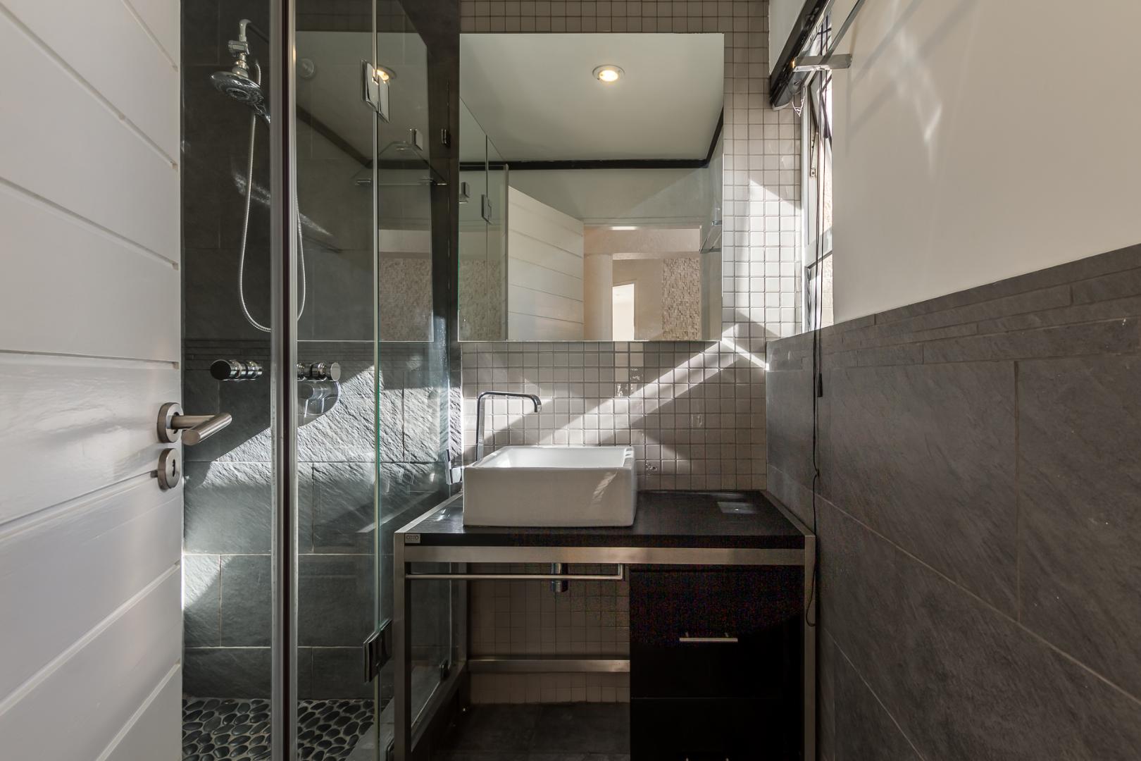 Upstairs are 5 air-conditioned sunny bedrooms, all with laminate wood floors, 3 full bathrooms, 1 being en-suite.
