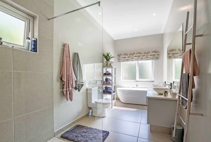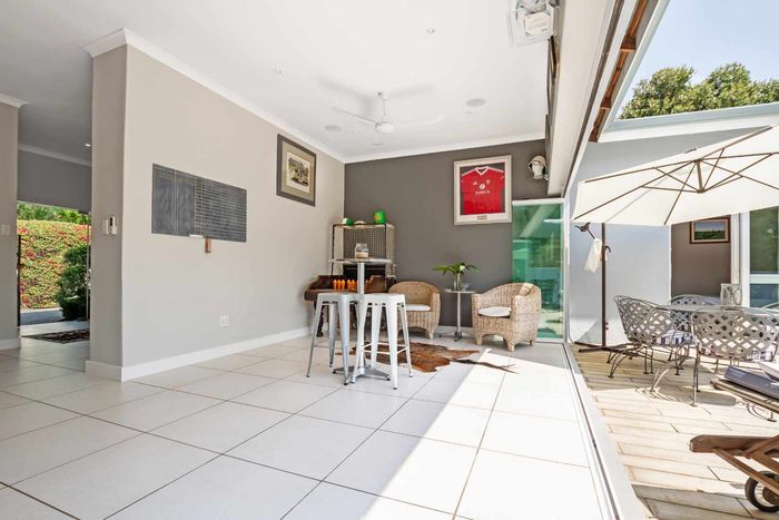 Upstairs are 4 bedrooms all having aircons, 2 have en-suite bathrooms, whilst the other 2 share a full bathroom. All the bedrooms open out onto a patio with built-in braai, when you can enjoy amazing sunsets. Plus there is a PJ which creates a common space to enjoy some family time.