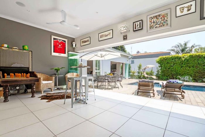 The enclosed patio with built-in bar, opens to a covered pergola which overlook the established garden, pool and wooden decking. The downstairs completed by a guest bedroom with adjacent bathroom.
