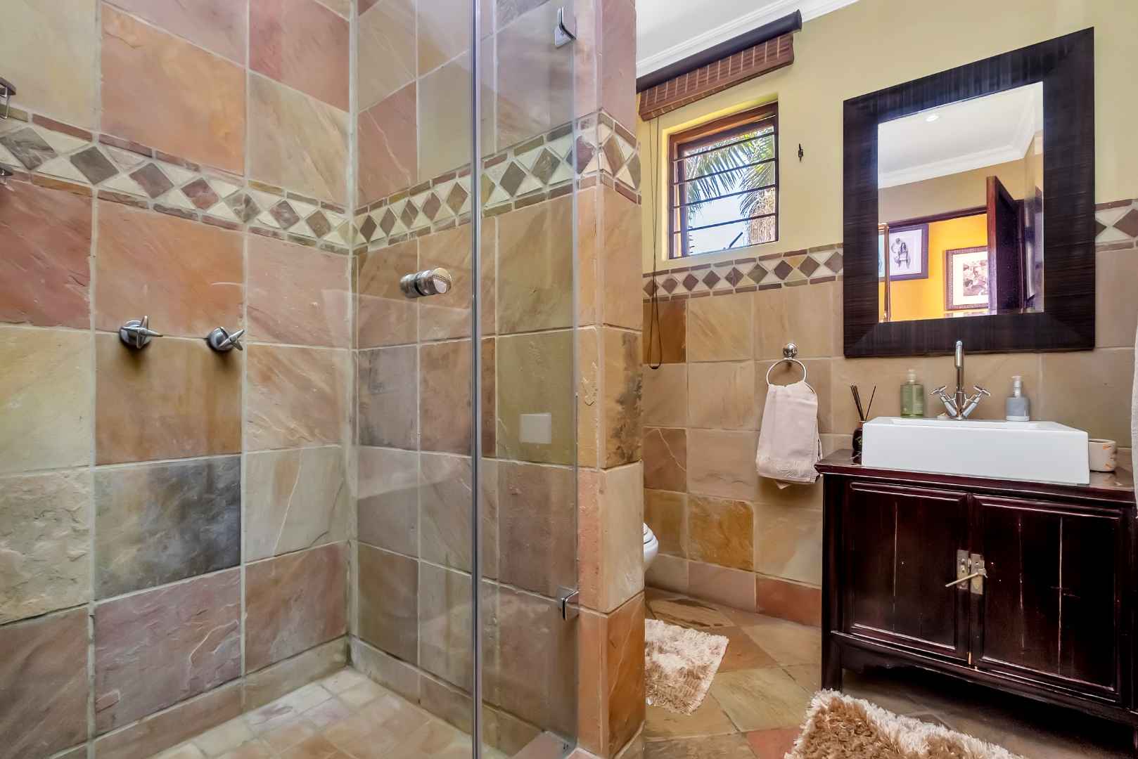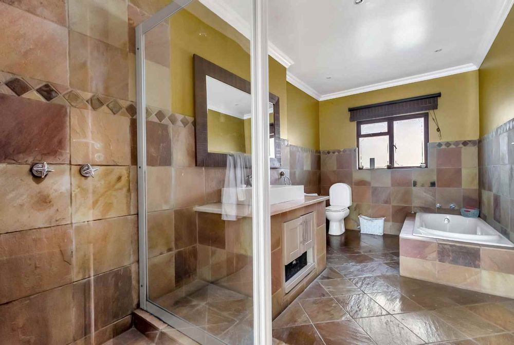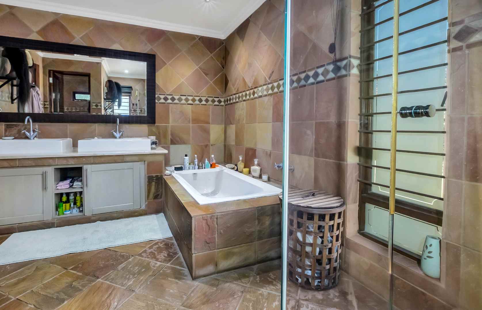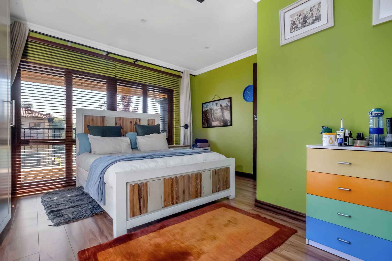 With three generously sized bedrooms upstairs, including the master suite with an en-suite bathroom, every member of the family will enjoy their own private retreat. Each room is designed with large windows/doors to let in natural light and provide serene views of the surroundings. Back downstairs there is a guest bedroom and bathroom on entry for your visitors to enjoy while they stay over. Step outside to a beautifully landscaped garden and a cozy patio area, ideal for braaiing and relaxation whilst overlooking the sparkling swimming pool.