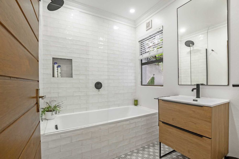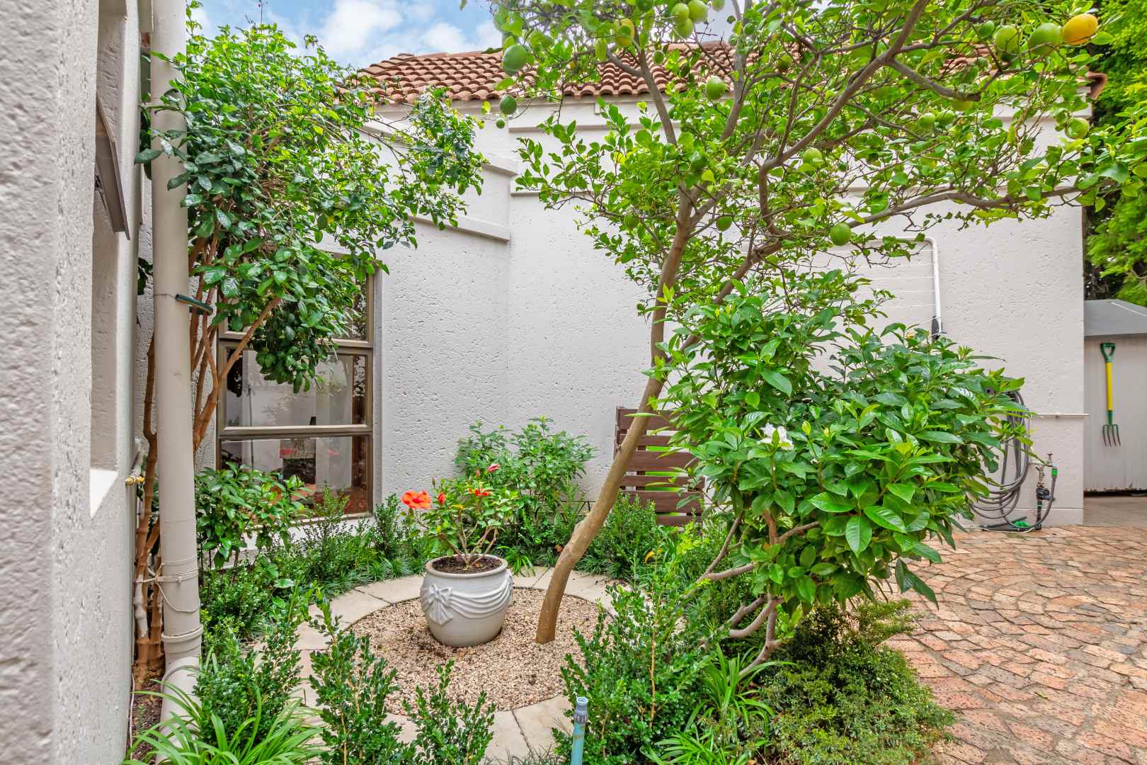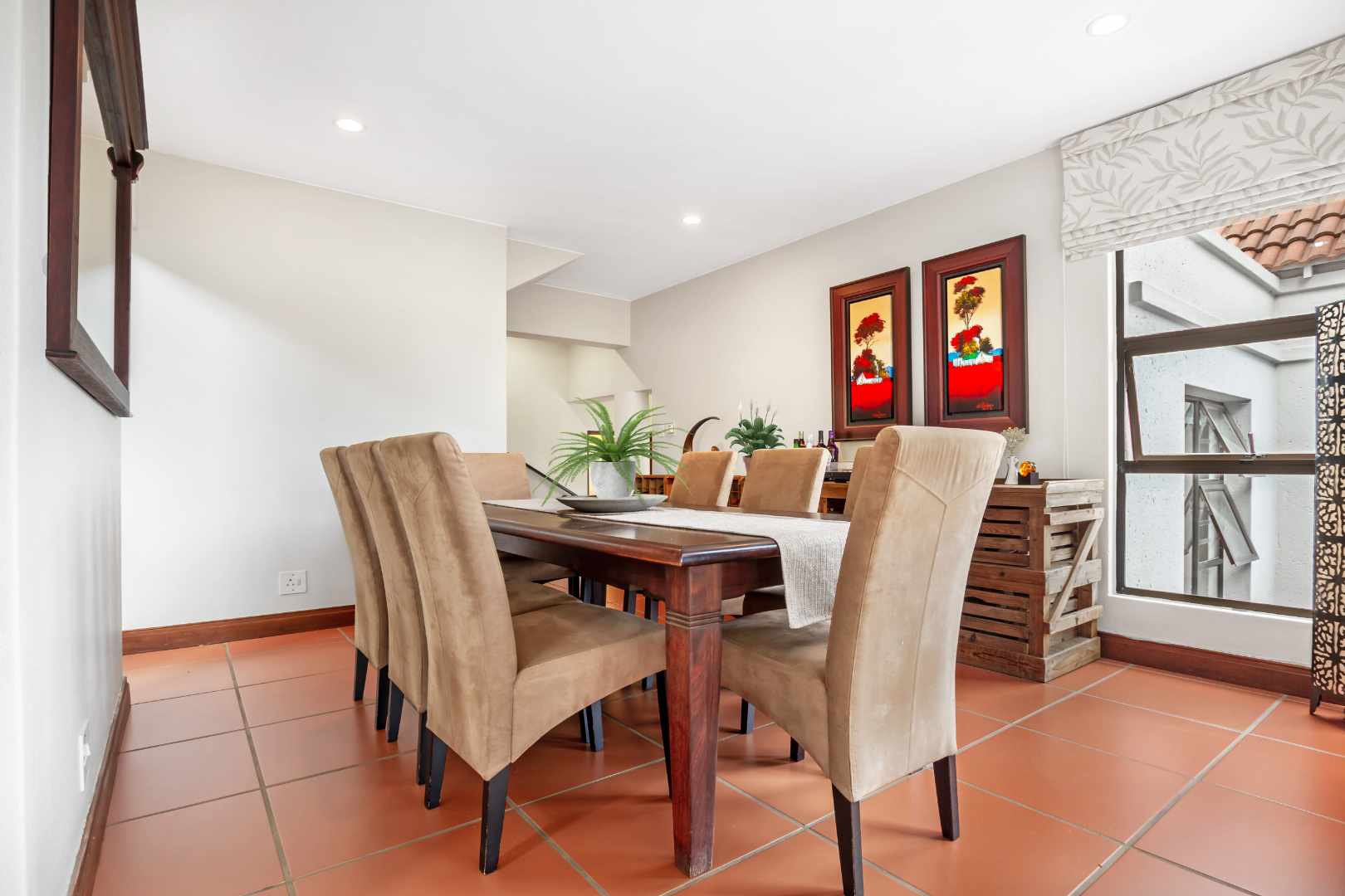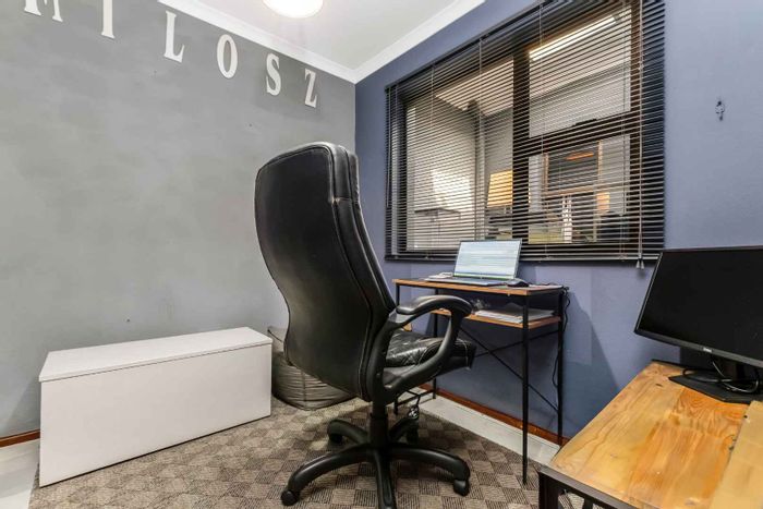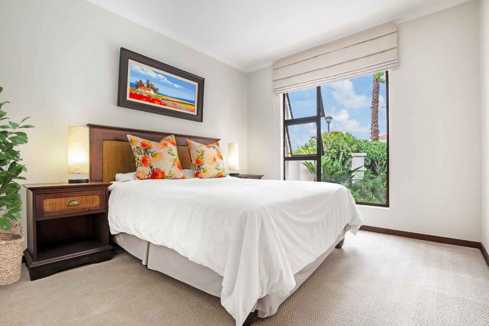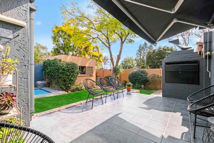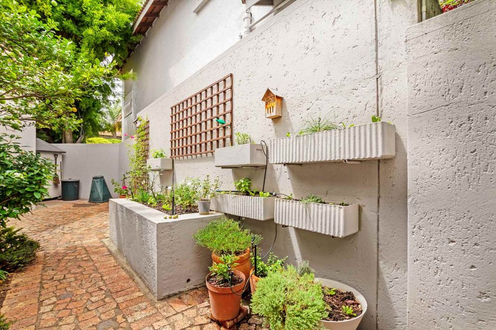 The entrance is very welcoming with a beautiful garden atrium leading into a large double volume living area. The natural sunlight is really uplifting and with the large sliding doors, it really brings the outside in. The lounge and dining room are very spacious and lead onto an elevated covered patio with a newly renovated pool and garden. The kitchen is so chic, with a gas hob and a view out onto a leafy back courtyard. Plants are a priority in this home! The calm colours of the kitchen blend in well with the environment. The staff room has been converted into a spacious laundry and there is a staff bathroom. There are 2.5 bathrooms. They have been beautifully renovated, with a trendy flair and style. The two bedrooms are spacious and the main bedroom has a dressing room and sliding door onto the pool area. Upstairs is a large study or pyjama lounge. This can also be used as a bedroom for visitors. There is a double garage and irrigation. Relax, the power back up ensures that you never go down!